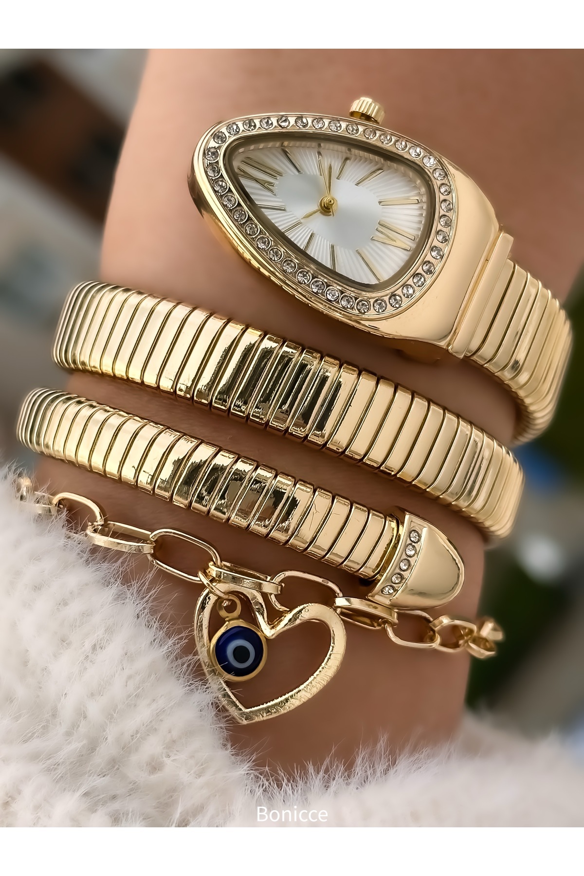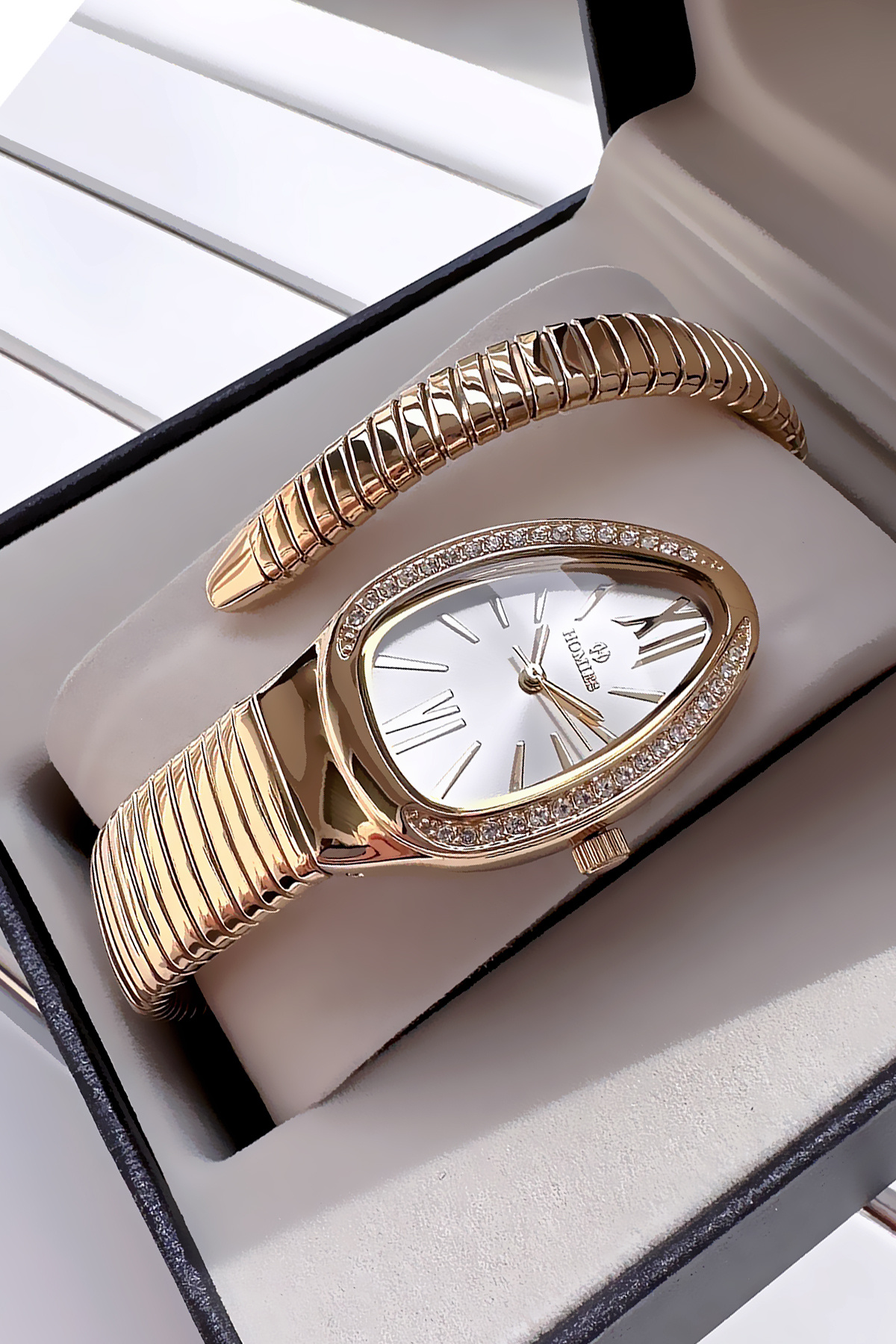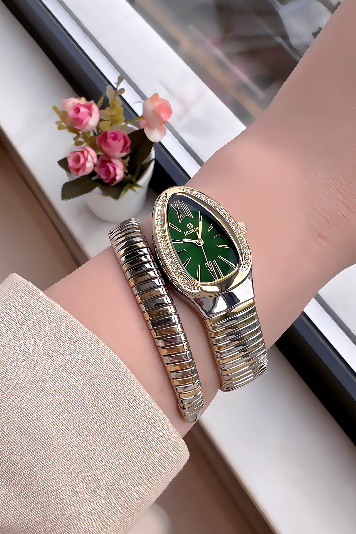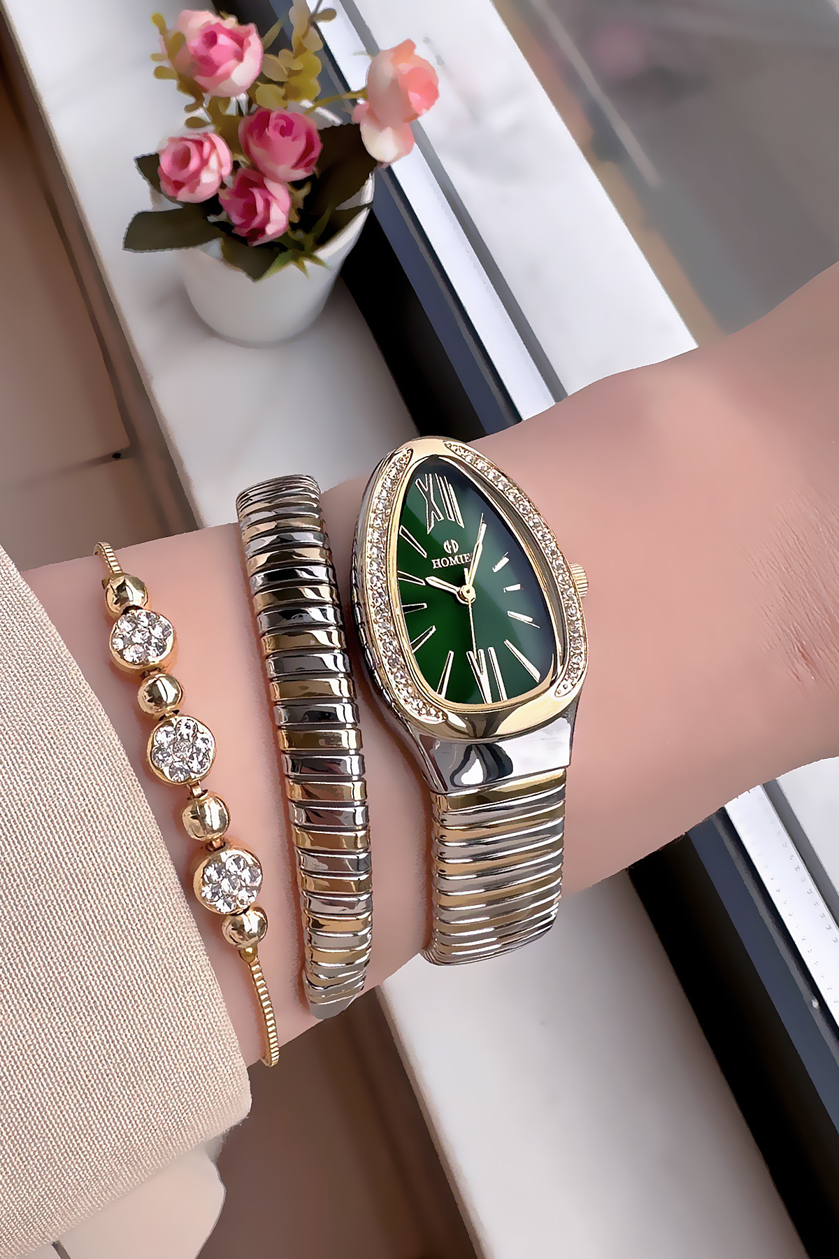 Özel Kutulu Yılan Modeli Kadın Kol Saati Su Geçirmez iki Renk Çelik Kordon +Bileklik HMBY2049C3 Özel Kutulu Yılan Modeli Kadın Kol Saati Su Geçirmez iki Renk Çelik Kordon +Bileklik HMBY2049C3 تک سایز