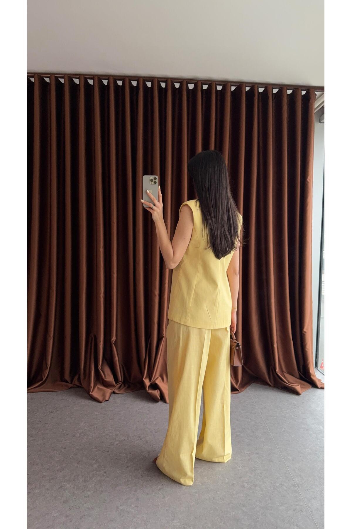 Keten Efektli %100 Pamuk Kumaş Sarı Takım Keten Efektli %100 Pamuk Kumaş Sarı Takım 11033 L