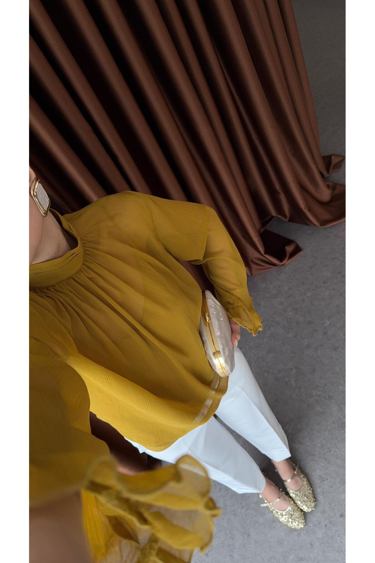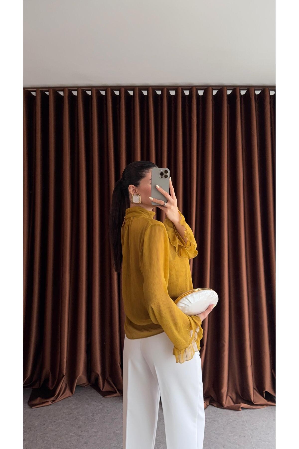 Dik Yaka Hardal Bluz Dik Yaka Hardal Bluz 11035 XL