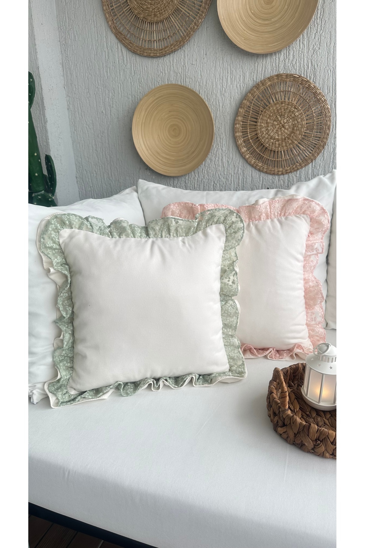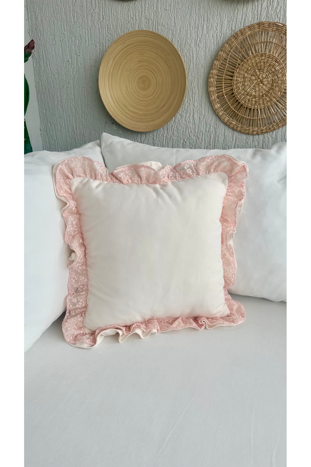 Dantel Detaylı Ekru Pembe Fırfırlı Kırlent Kılıfı Dantel Detaylı Ekru Pembe Fırfırlı Kırlent Kılıfı dan10 45 x 45
