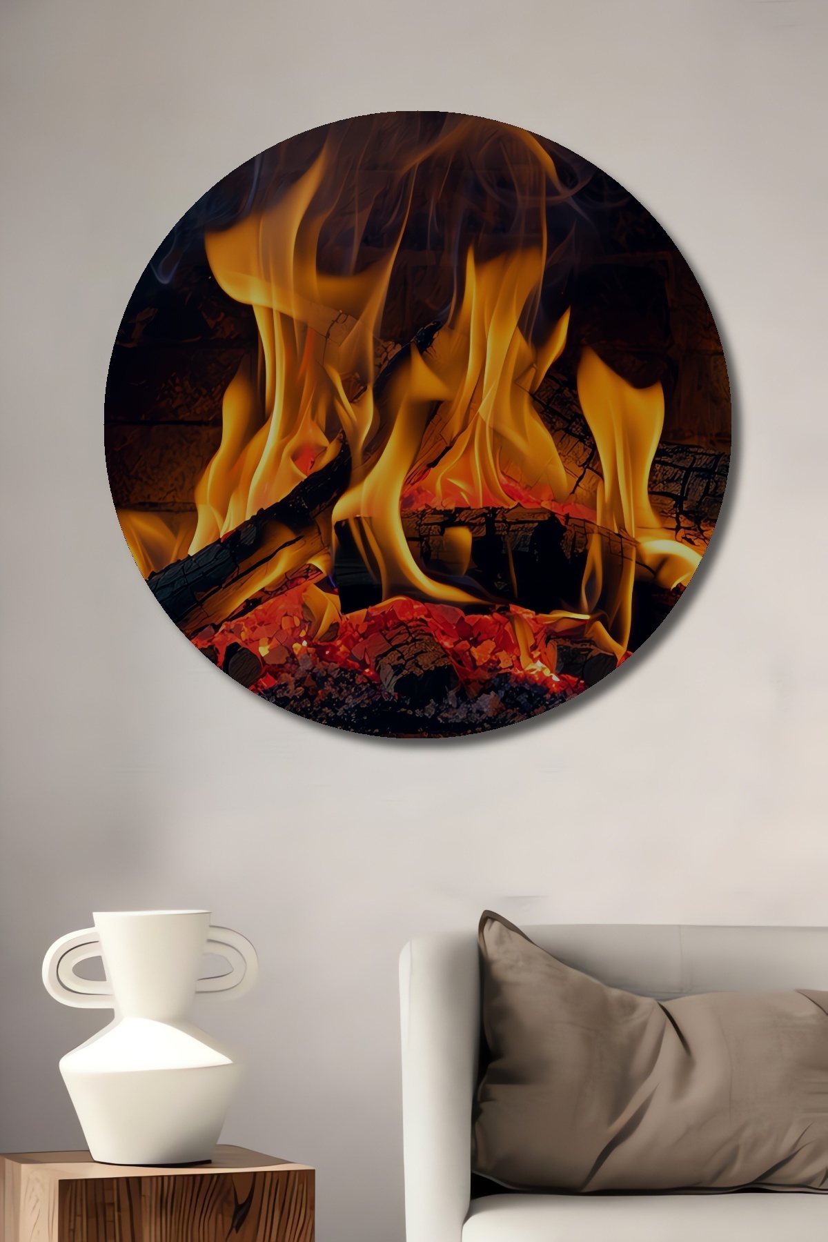 Şömine Ateşi Yağlı Boya Görünümlü Ahşap Dekoratif Yuvarlak Salon/Ofis/Ev Çerçeve Görünümlü Tablo Şömine Ateşi Yağlı Boya Görünümlü Ahşap Dekoratif Yuvarlak Salon/Ofis/Ev Çerçeve Görünümlü Tablo hknsdtb_10838_T 50 x 50