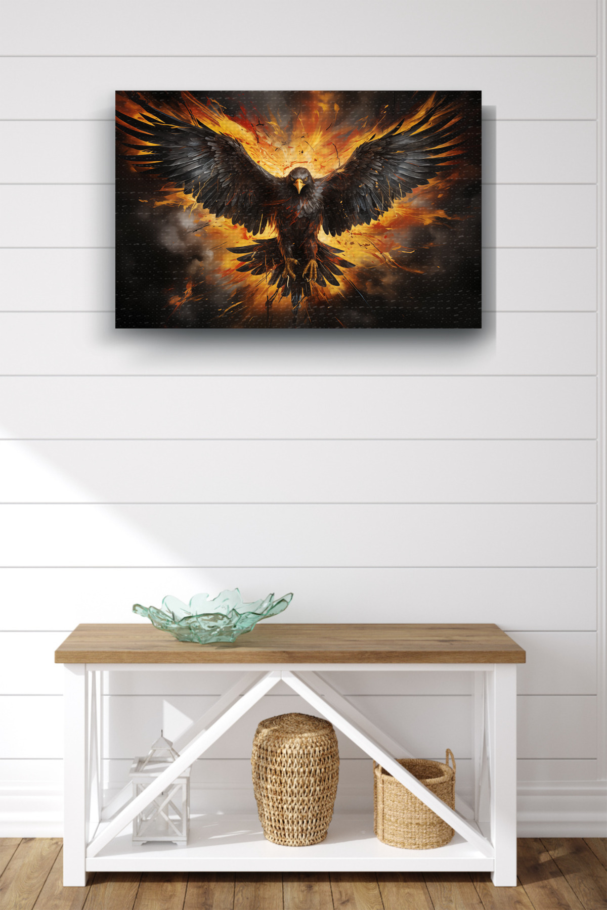 Ateşten Kanatlı Kartal Yağlı Boya Görünümlü Ahşap Dekoratif Yuvarlak Salon/Ofis/Ev/Mutfak Tablo Ateşten Kanatlı Kartal Yağlı Boya Görünümlü Ahşap Dekoratif Yuvarlak Salon/Ofis/Ev/Mutfak Tablo hknsdtb_10856_T 50 x 50