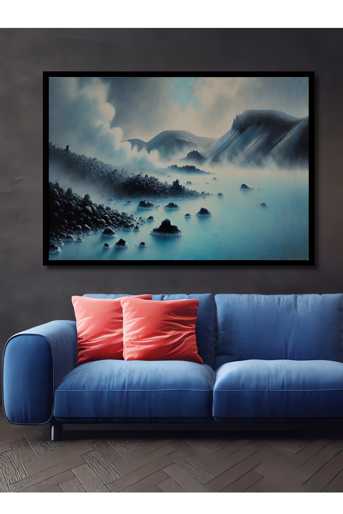 Buz Mavi Göl Yağlı Boya Görünümlü Ahşap Dekoratif Dikdörtgen Salon/Ofis/Ev/Mutfak/Banyo Tablo Buz Mavi Göl Yağlı Boya Görünümlü Ahşap Dekoratif Dikdörtgen Salon/Ofis/Ev/Mutfak/Banyo Tablo hkngptbl_1518_T 90 x 60