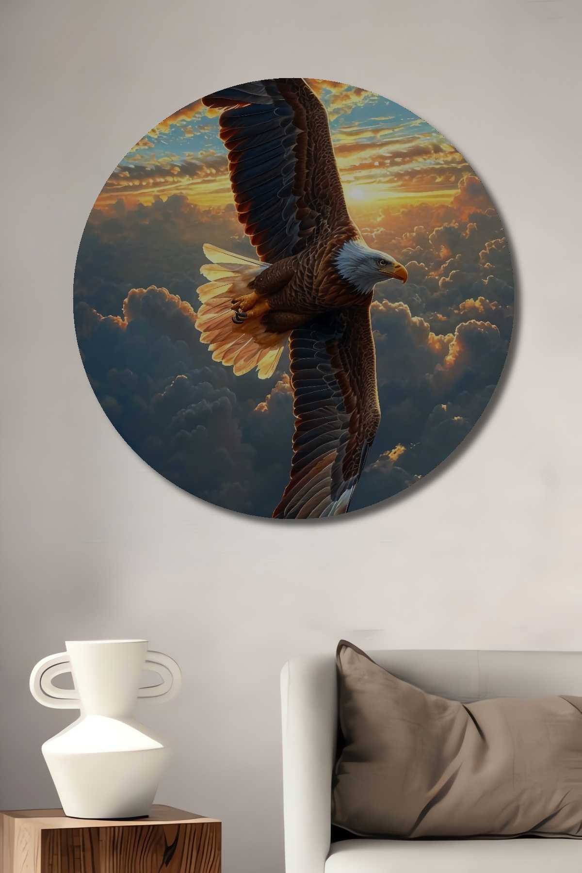 Gökyüzünde Süzülen Kartal Yağlı Boya Görünümlü Ahşap Dekoratif Yuvarlak Salon/Ofis/Ev/Mutfak Tablo Gökyüzünde Süzülen Kartal Yağlı Boya Görünümlü Ahşap Dekoratif Yuvarlak Salon/Ofis/Ev/Mutfak Tablo hknsdtb_10551_T 50 x 50