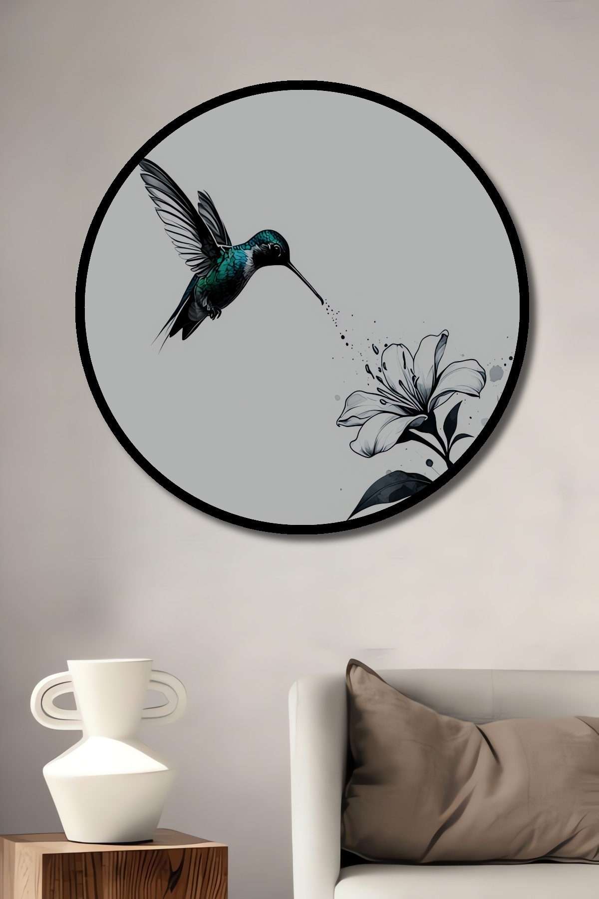 Sulu Boya Görünümlü Sinek Kuşu ve Zambak Çiçeği Ahşap Dekoratif Yuvarlak Salon/Ofis/Ev Tablo Sulu Boya Görünümlü Sinek Kuşu ve Zambak Çiçeği Ahşap Dekoratif Yuvarlak Salon/Ofis/Ev Tablo hknsdtb_16984_T 50 x 50