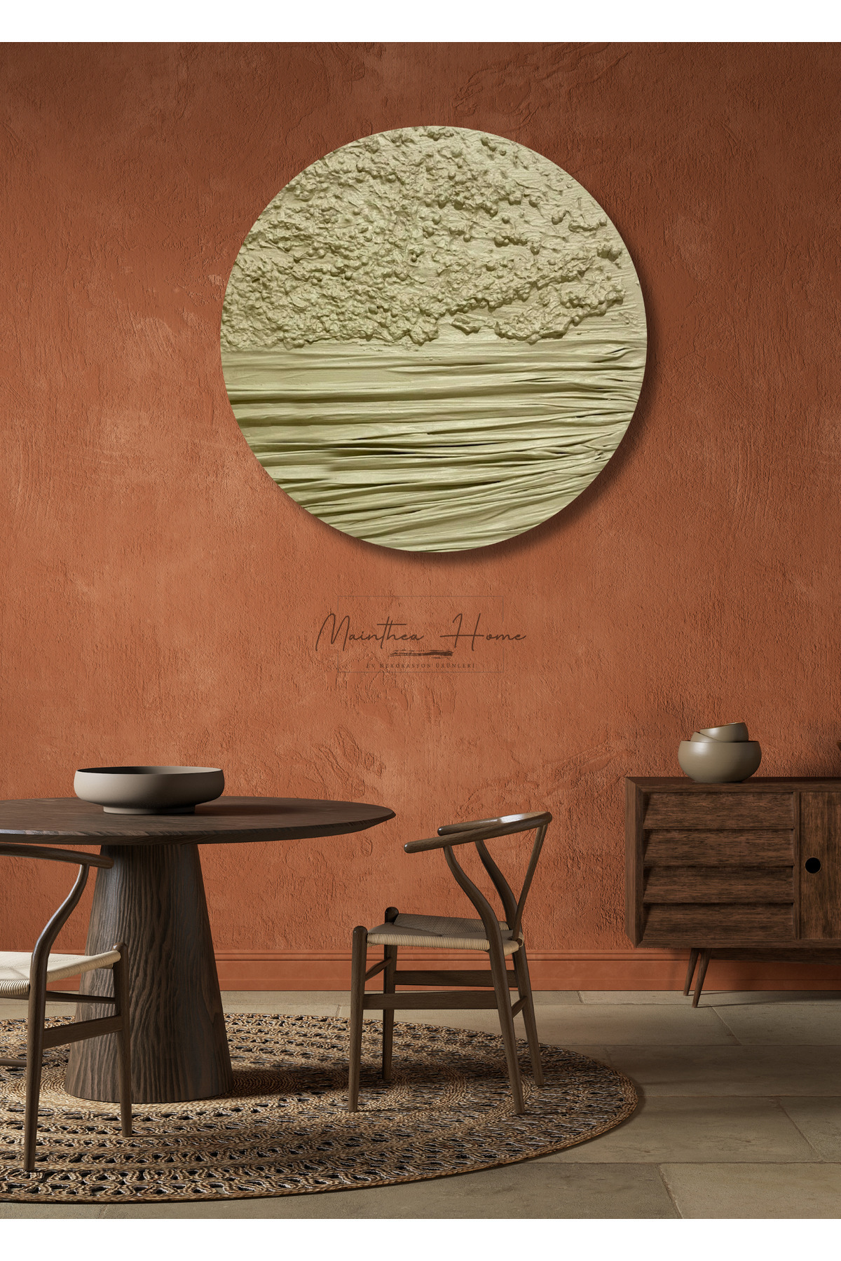 Dokulu Yuvarlak Alçı Tablo - Sessiz Ufuk | El Yapımı 3D Dekoratif Duvar Tablosu Dokulu Yuvarlak Alçı Tablo - Sessiz Ufuk | El Yapımı 3D Dekoratif Duvar Tablosu MYYB001 30 x 30