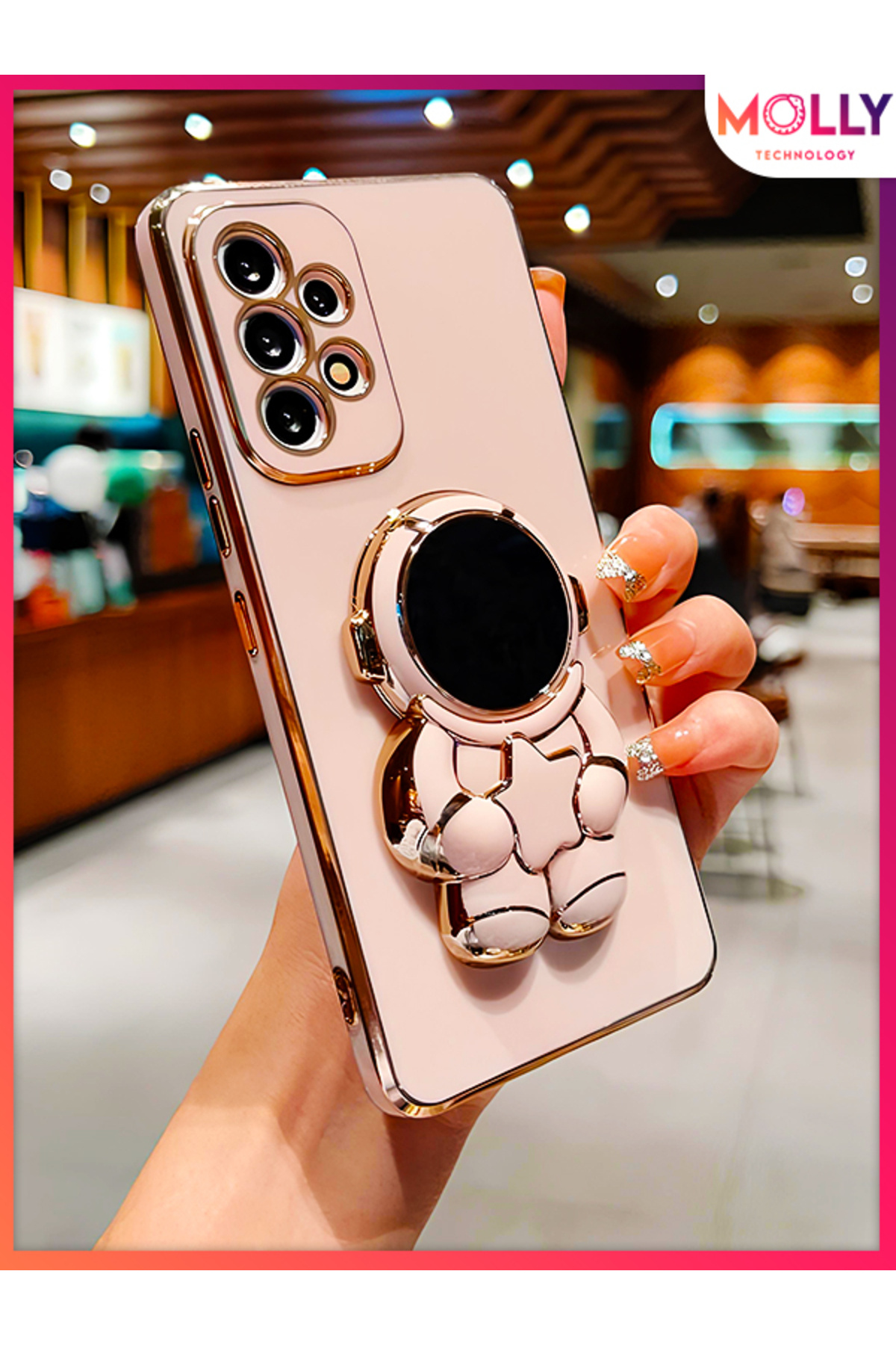 Samsung Galaxy A13 İçin İnci Beyazı Sevimli Astronot Standlı Gold Detaylı Lüks Silikon Kılıf Samsung Galaxy A13 İçin İnci Beyazı Sevimli Astronot Standlı Gold Detaylı Lüks Silikon Kılıf ASTA13-MLY099 تک سایز