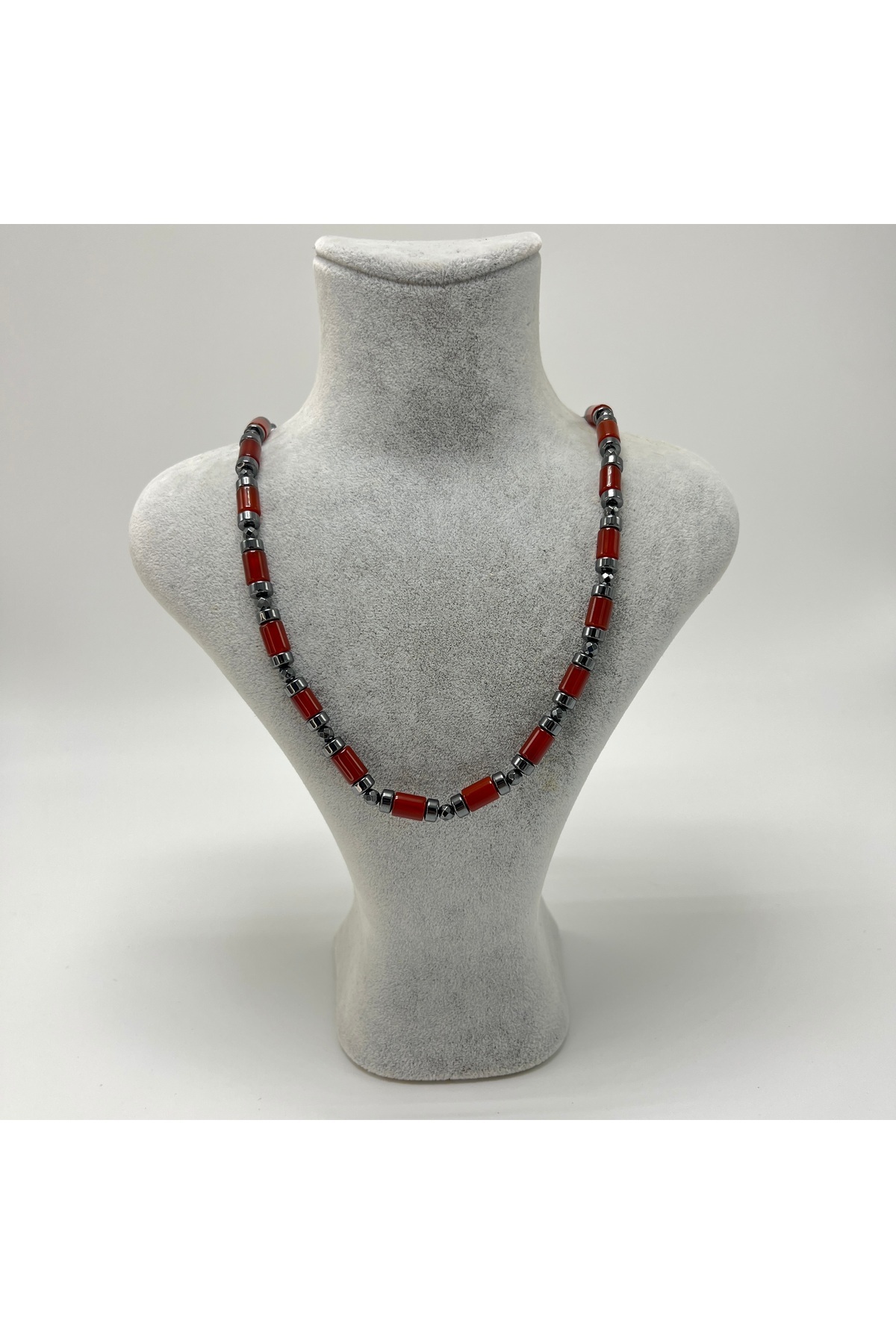 Sertifikalı Kırmızı Akik ve Hematit Makrome Doğal Taş Kolye 55 - 65 cm Ayarlanabilir Ölçü Sertifikalı Kırmızı Akik ve Hematit Makrome Doğal Taş Kolye 55 - 65 cm Ayarlanabilir Ölçü ydk138 60 cm