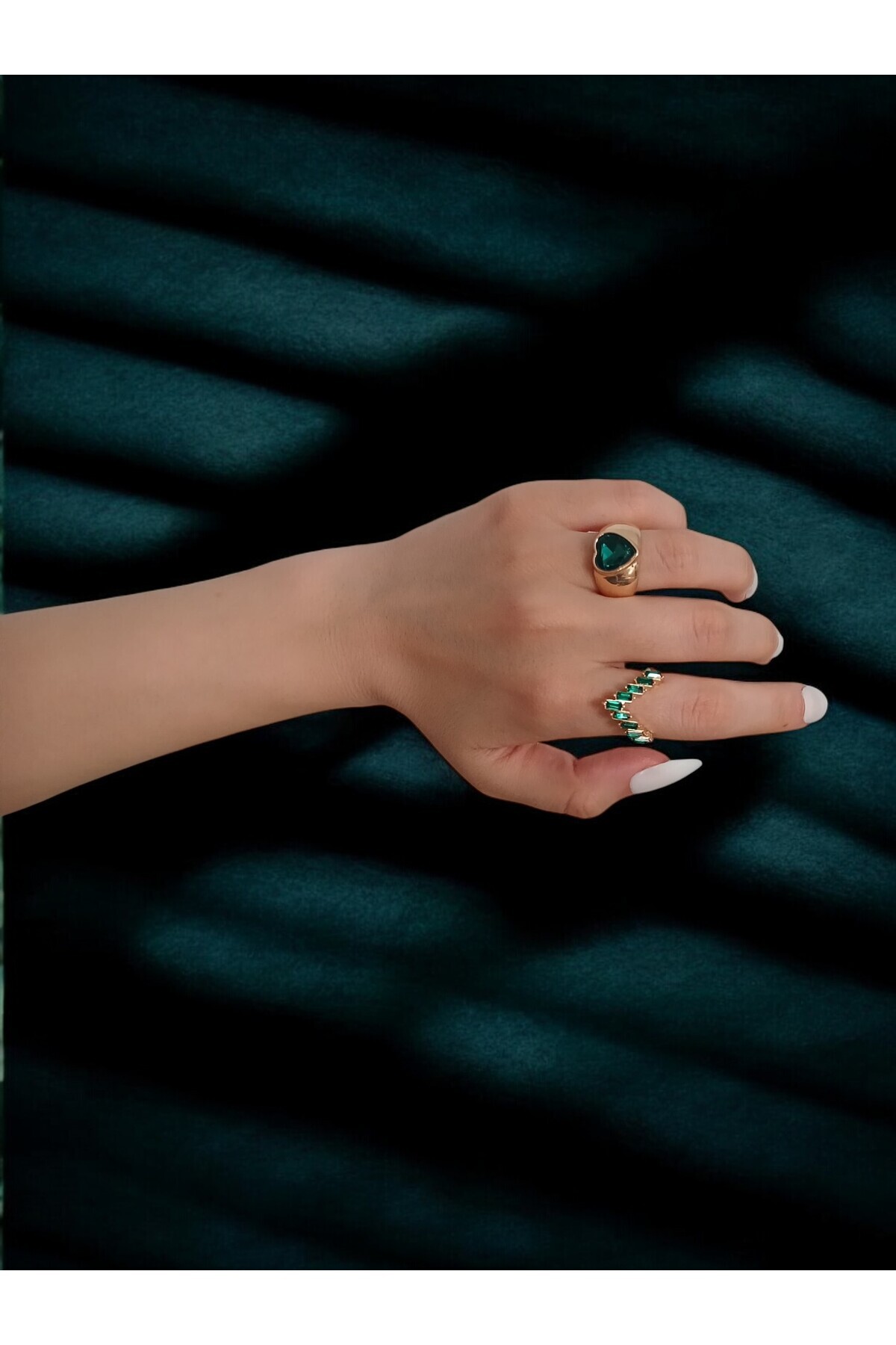 Zümrüt Gold 2'li Yüzük Seti-Zümrüt Işıltısı Zümrüt Gold 2'li Yüzük Seti-Zümrüt Işıltısı SKT111124 8