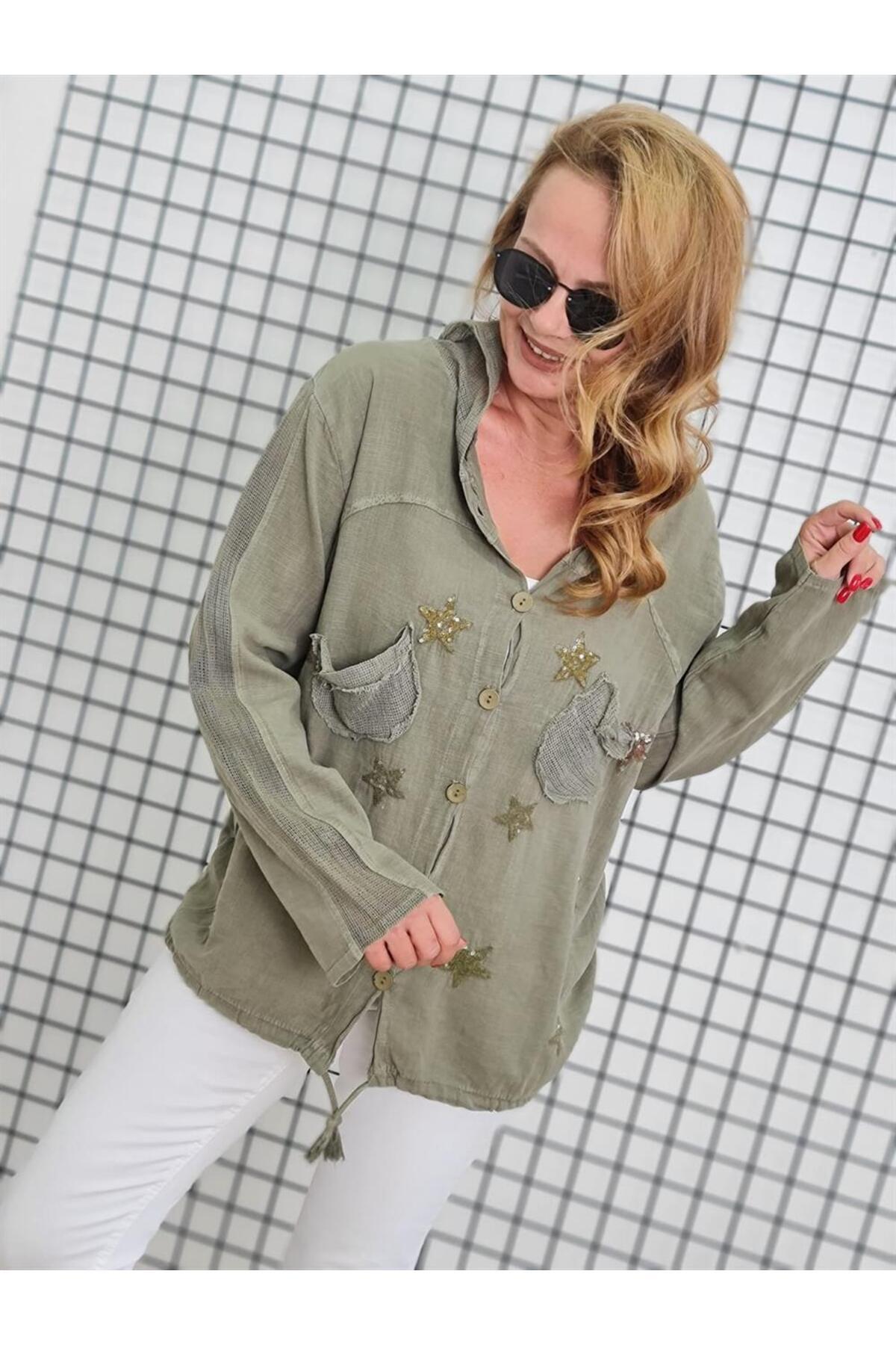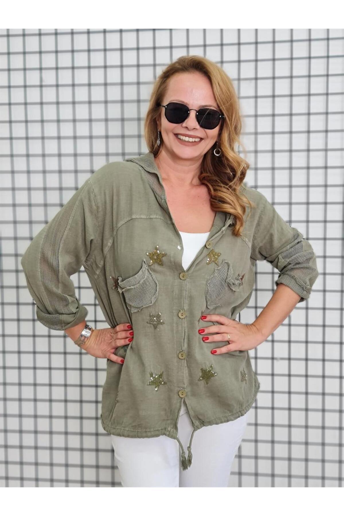 Kadın Oversize Ceket Yıldız ve File Detay Kapüşonlu %100 Pamuk Premium Dokuma Kumaş Kadın Oversize Ceket Yıldız ve File Detay Kapüşonlu %100 Pamuk Premium Dokuma Kumaş TYC166920B3442782FDE25300 L/XL