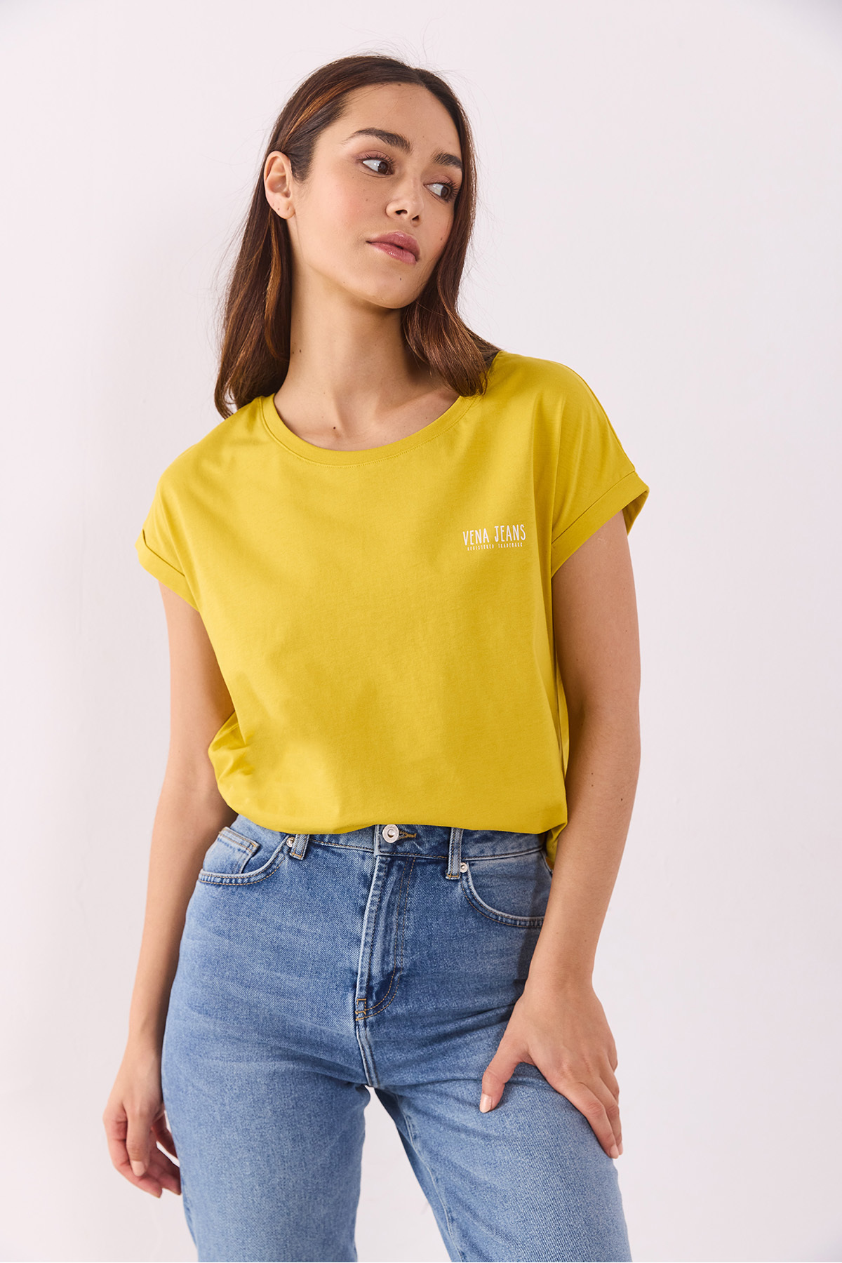 Cindy Vena Logolu Tişört - SARI Cindy Vena Logolu Tişört - SARI 2Y25200766 XL
