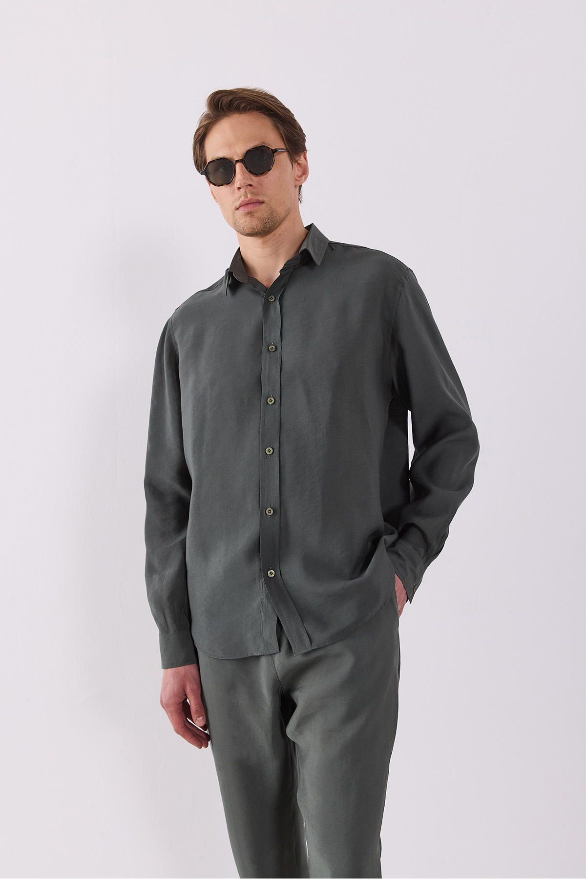 Nicolas Yumuşak Dokulu Regular Fit Gömlek (CUPRO) - SİYAH Nicolas Yumuşak Dokulu Regular Fit Gömlek (CUPRO) - SİYAH 5Y255174 2XL