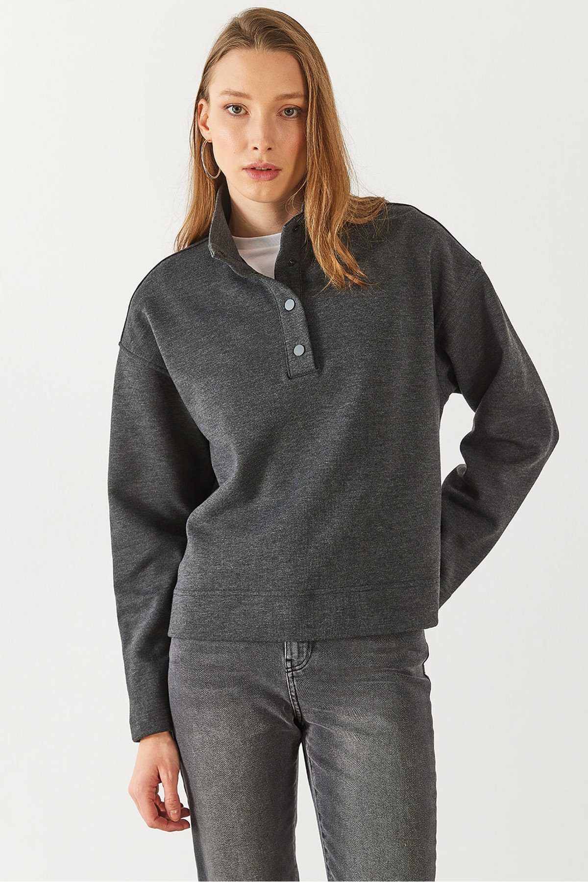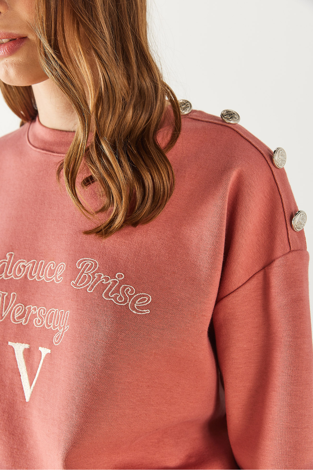 Omzu Düğme Detaylı Nakışlı Sweatshirt - GÜLKURUSU Omzu Düğme Detaylı Nakışlı Sweatshirt - GÜLKURUSU 2K25201005 XL