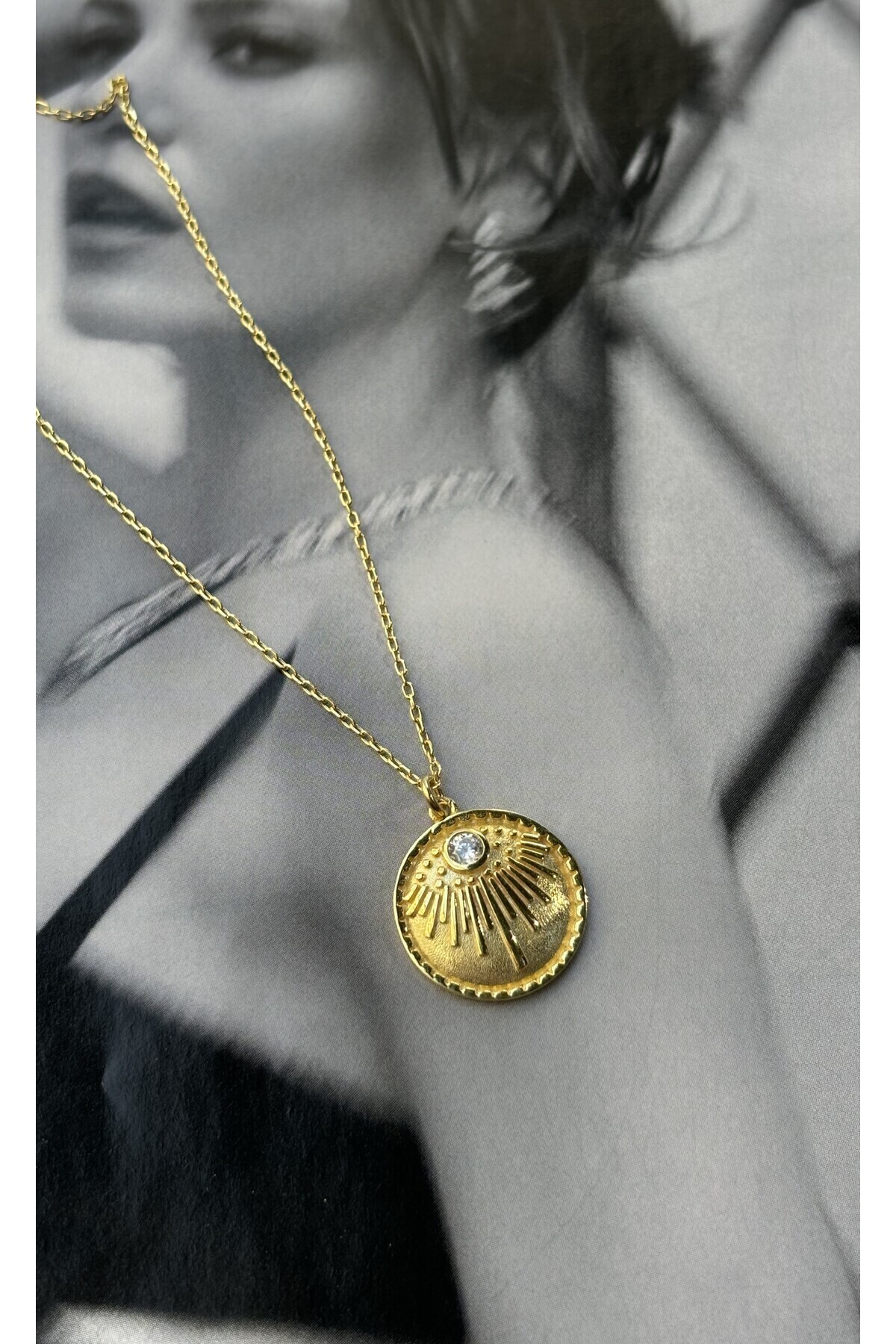 Altın Kaplama Taşlı Madalyon Kolye 925 Ayar Gümüş Altın Kaplama Taşlı Madalyon Kolye 925 Ayar Gümüş 9918901 40 cm