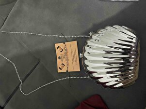 Kadın Silver Metal Istiridye Formlu Zincir Detaylı Abiye Çanta Kadın Silver Metal Istiridye Formlu Zincir Detaylı Abiye Çanta istiridye-01 تک سایز