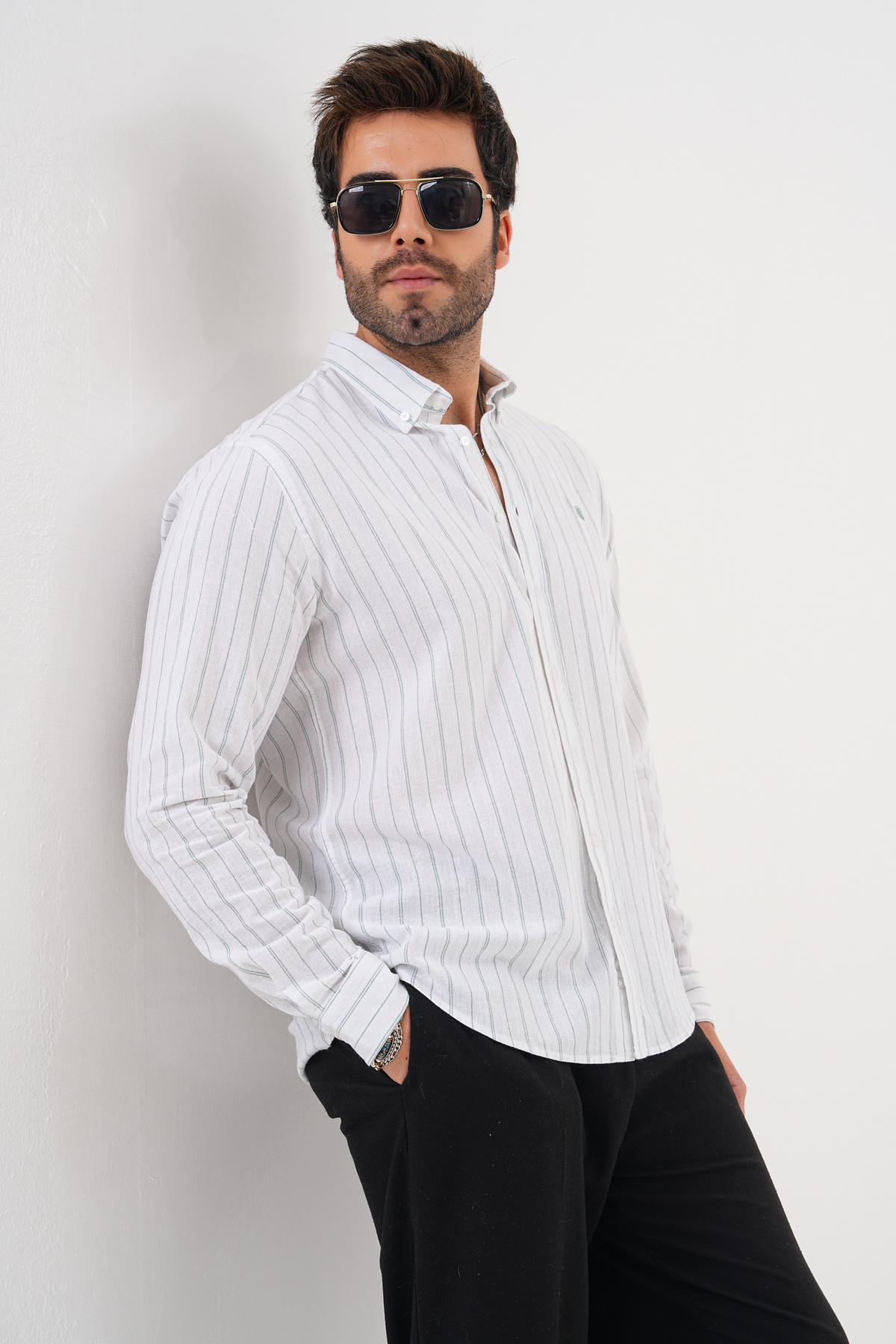 Erkek 100%pamuk Nefes Alan Teri Emen Çizgili Regular Gömlek Erkek 100%pamuk Nefes Alan Teri Emen Çizgili Regular Gömlek 1254103 3XL