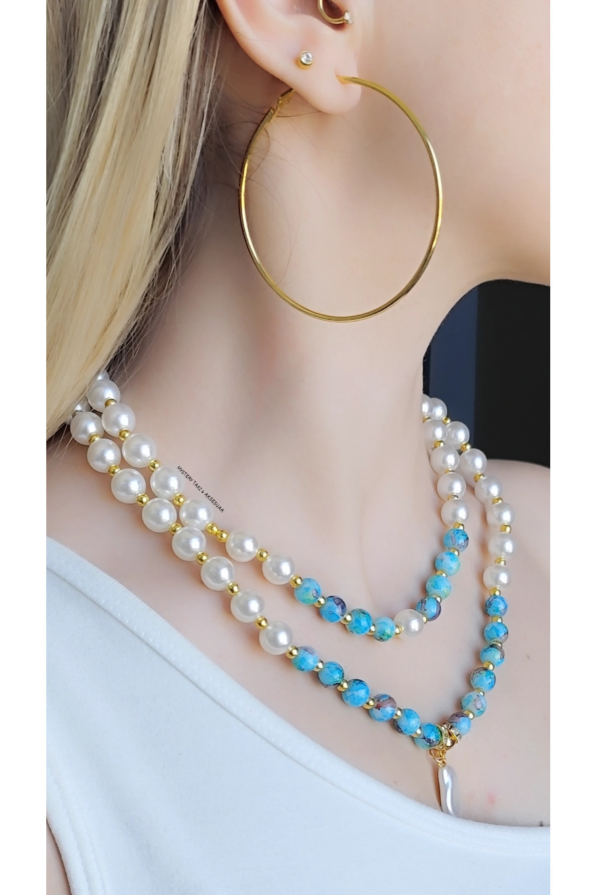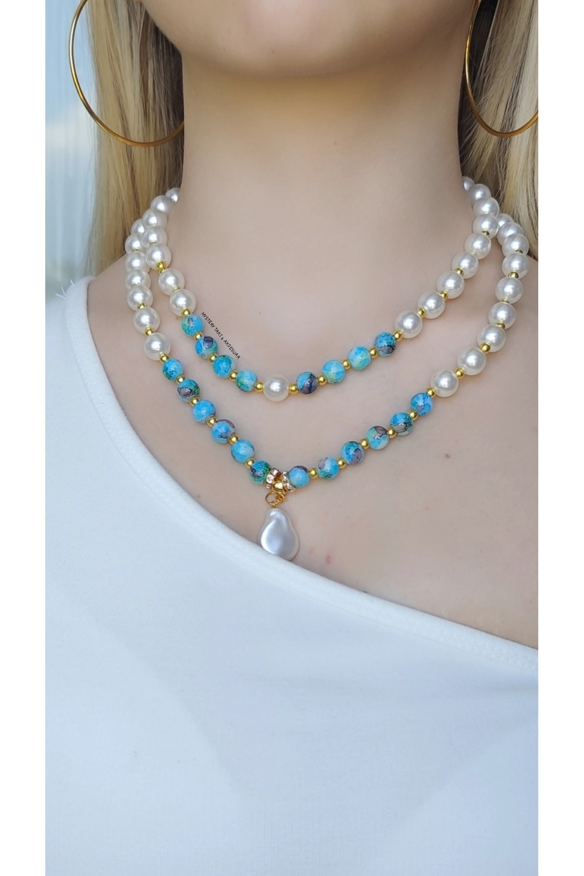 DOĞAL CAM BONCUK İNCİ KOLYE DOĞAL CAM BONCUK İNCİ KOLYE İNCİ002 تک سایز