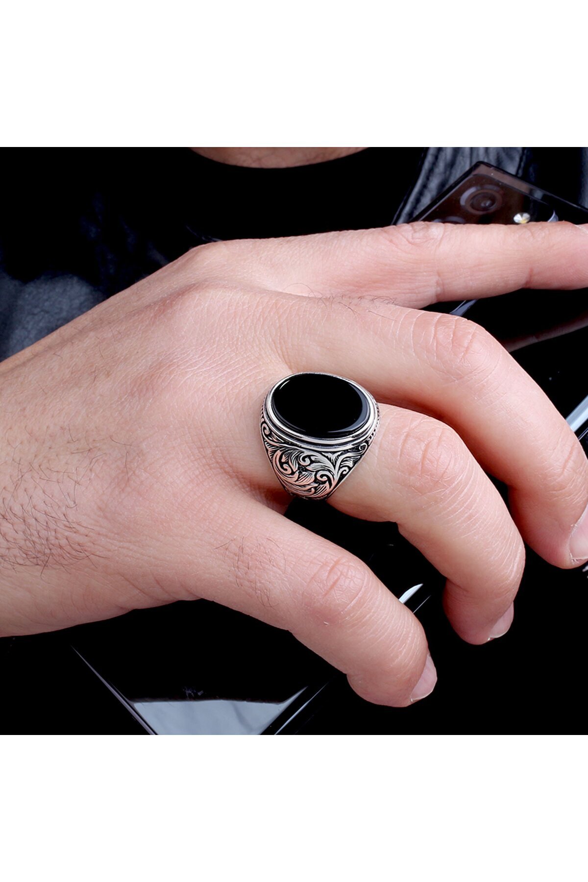925 Ayar Gümüş Onix Taşlı Kalem İşleme Motifli Erkek Yüzük 925 Ayar Gümüş Onix Taşlı Kalem İşleme Motifli Erkek Yüzük TSC7412714 30