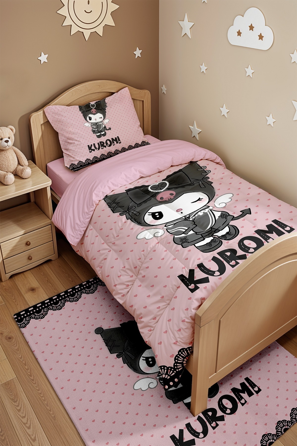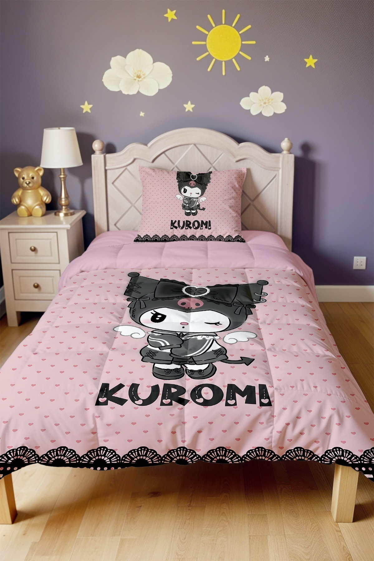 Pembe Kalpler ve Kuromi Desenli Tek Kişilik Yorgan ve Yastık Kılıfı Pembe Kalpler ve Kuromi Desenli Tek Kişilik Yorgan ve Yastık Kılıfı evyorgan0135 تک سایز