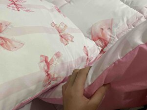 Pembe Şeritli Fiyonklar Desenli Tek Kişilik Yorgan ve Yastık Kılıfı Pembe Şeritli Fiyonklar Desenli Tek Kişilik Yorgan ve Yastık Kılıfı evyorgan0160 تک سایز