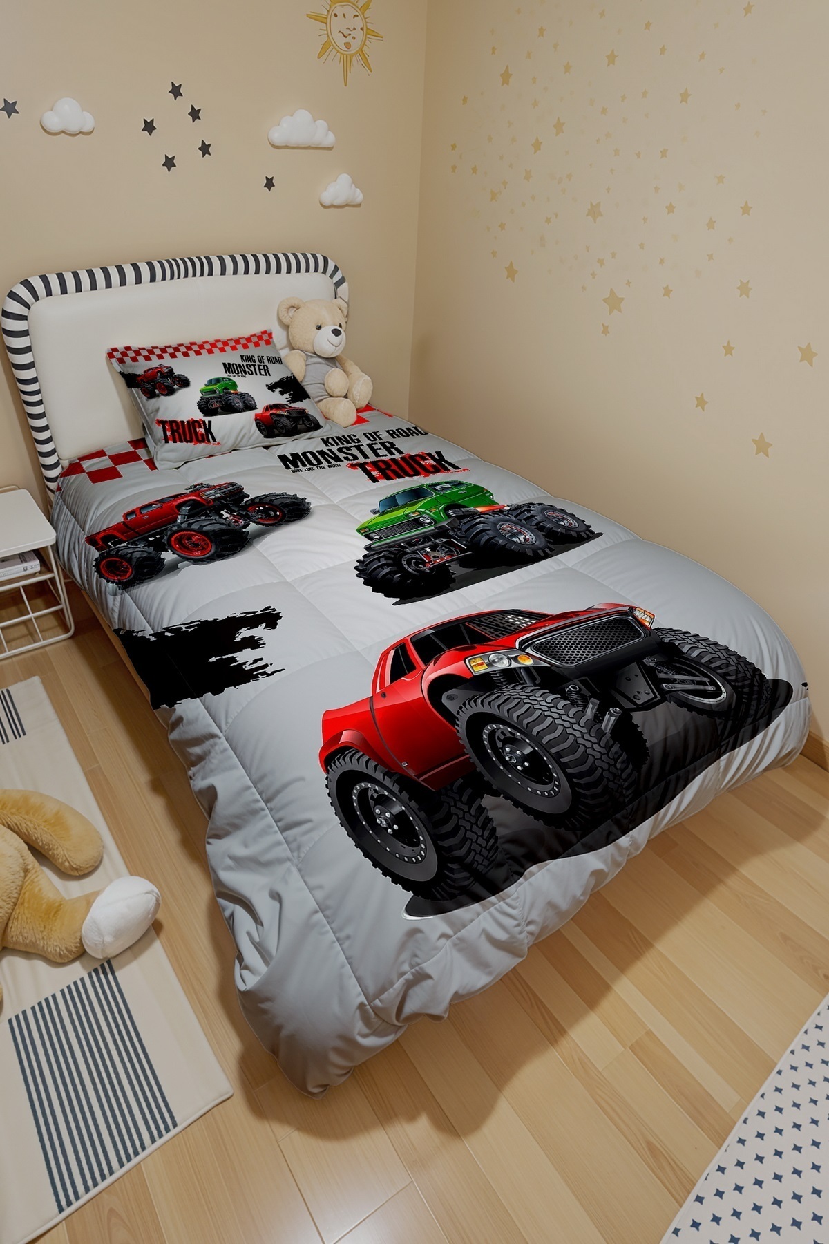 Kırmızı Truck Desenli Tek Kişilik Yorgan ve Yastık Kılıfı Kırmızı Truck Desenli Tek Kişilik Yorgan ve Yastık Kılıfı evyorgan087 تک سایز