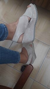 Kadın Bej Arkadan Bantlı Dolgu Topuklu Ayakkabı Süet Hakiki Deri Sandalet 25SFD141010 Kadın Bej Arkadan Bantlı Dolgu Topuklu Ayakkabı Süet Hakiki Deri Sandalet 25SFD141010 40