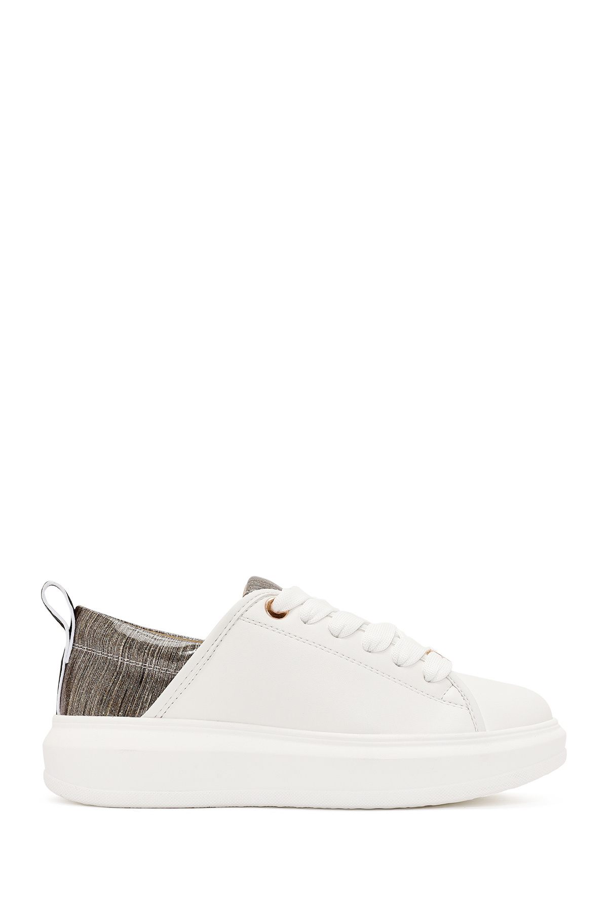 Kadın Beyaz Bağcıklı Kalın Tabanlı Deri Sneaker 25SFD371618 Kadın Beyaz Bağcıklı Kalın Tabanlı Deri Sneaker 25SFD371618 40