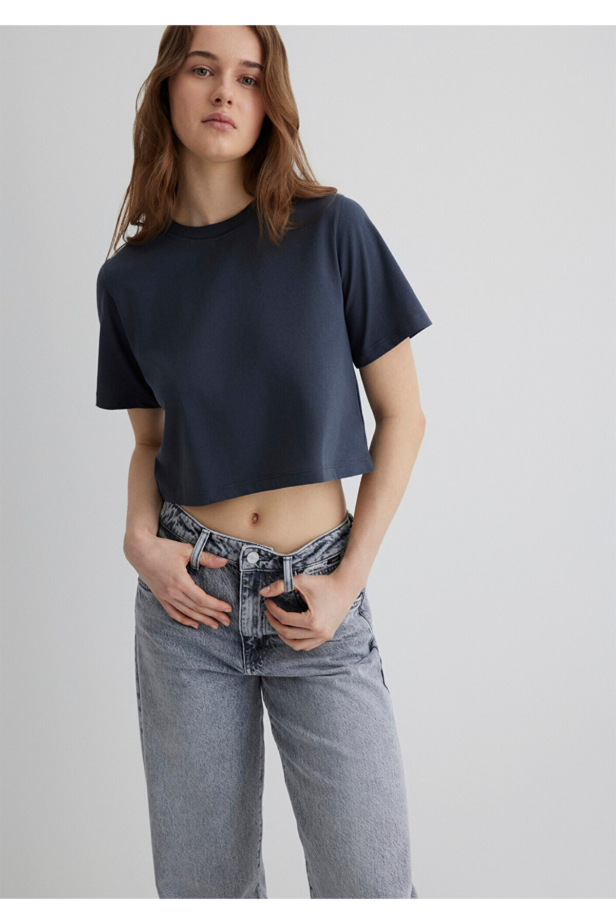 Antrasit Crop Basic Tişört Crop / Kısa Kesim 1613072-70763 Antrasit Crop Basic Tişört Crop / Kısa Kesim 1613072-70763 M