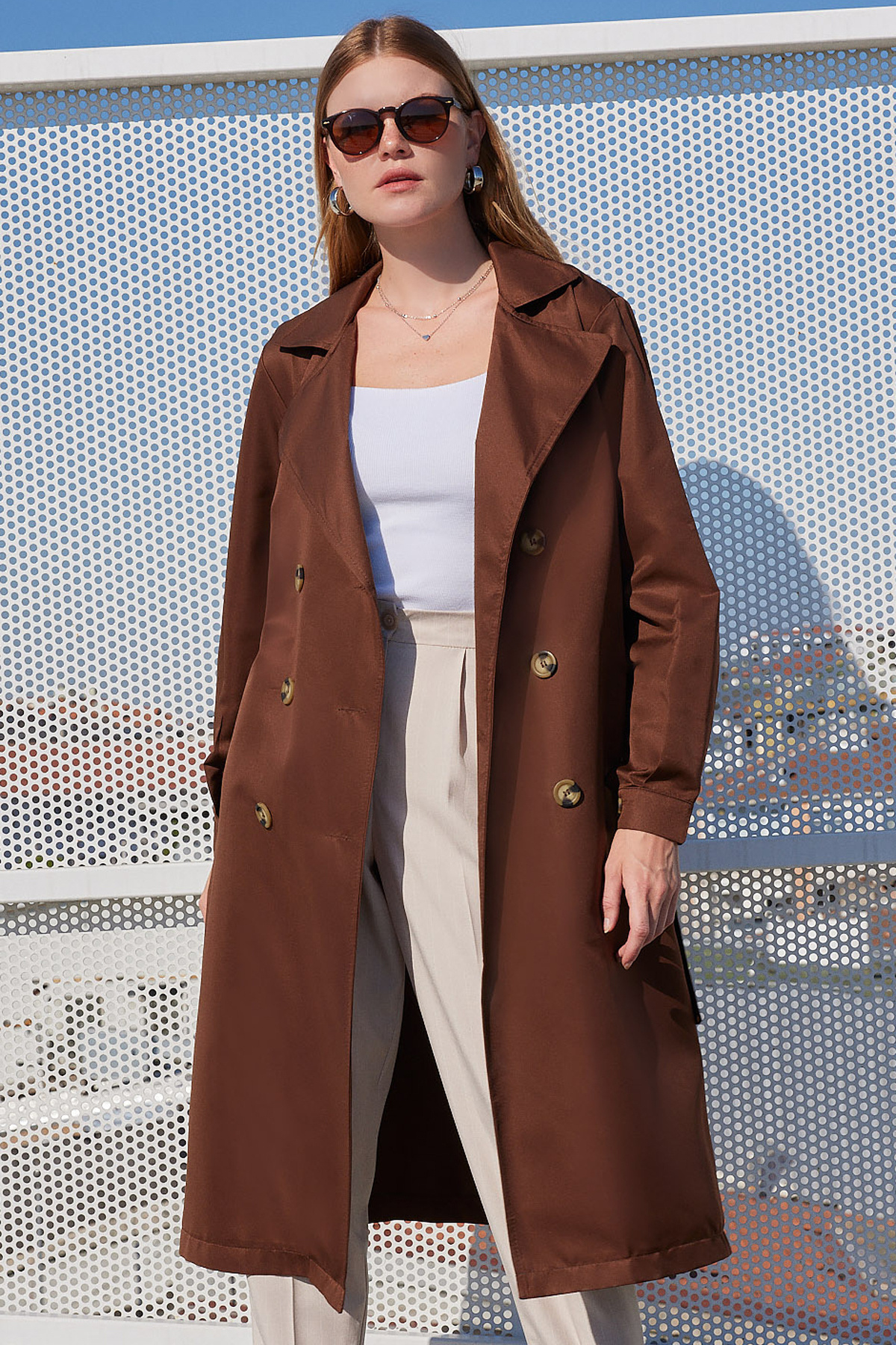 Kadın Kruvaze Yaka Kuşaklı Kahverengi Trençkot Kadın Kruvaze Yaka Kuşaklı Kahverengi Trençkot 5918MRT25 50