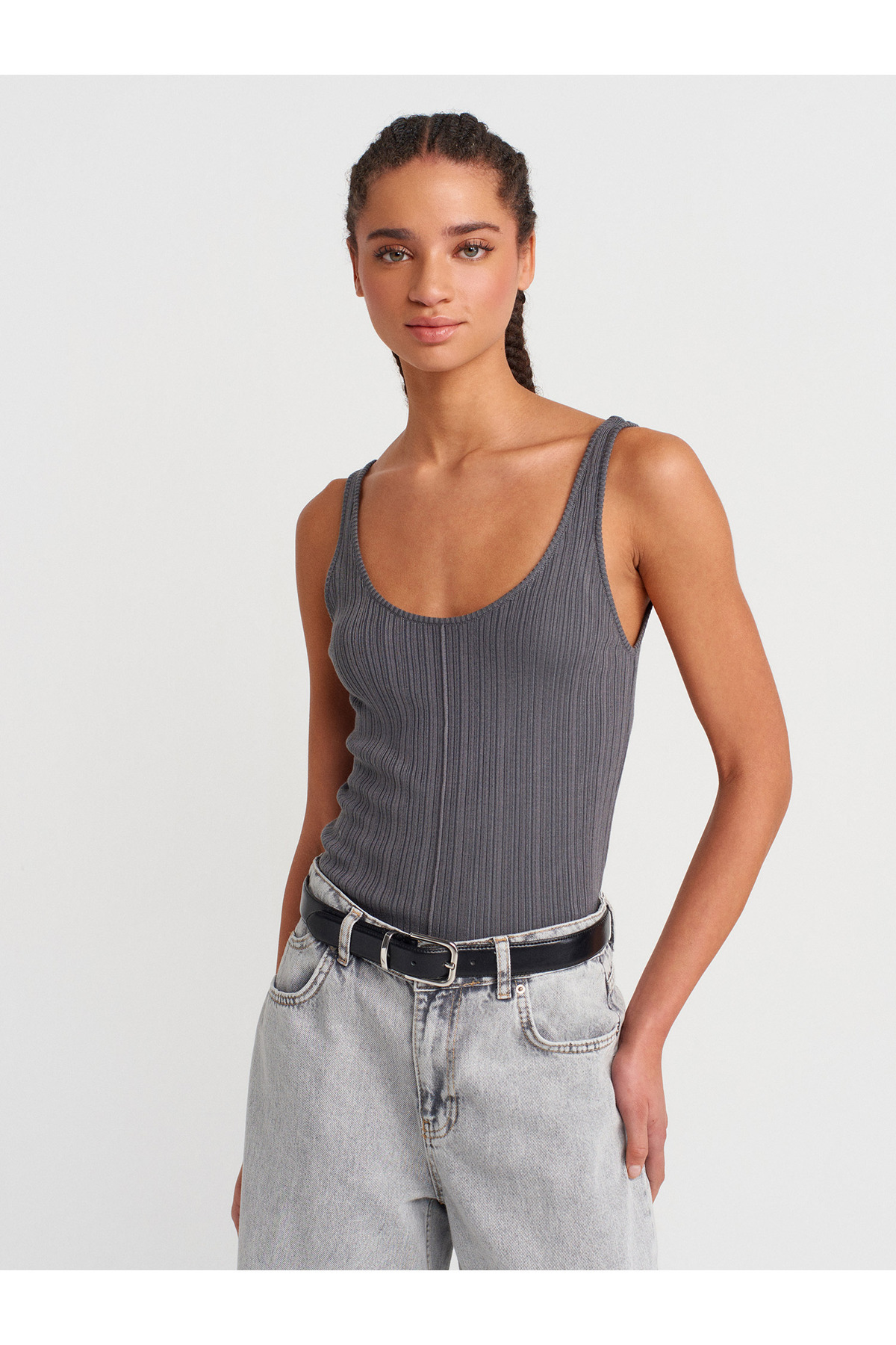 10747 Fitilli İnce Dokulu Triko Bluz-Füme 10747 Fitilli İnce Dokulu Triko Bluz-Füme 101A10747 Standart