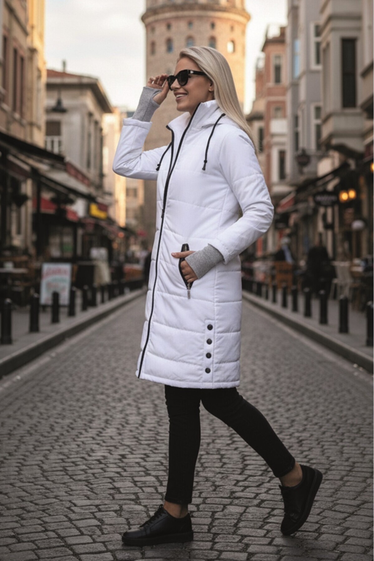 Kışlık Eldiven Detaytlı Kapüşonlu Uzun Şişme Kadın Mont Kışlık Eldiven Detaytlı Kapüşonlu Uzun Şişme Kadın Mont TDSnva805beyaz2 2XL