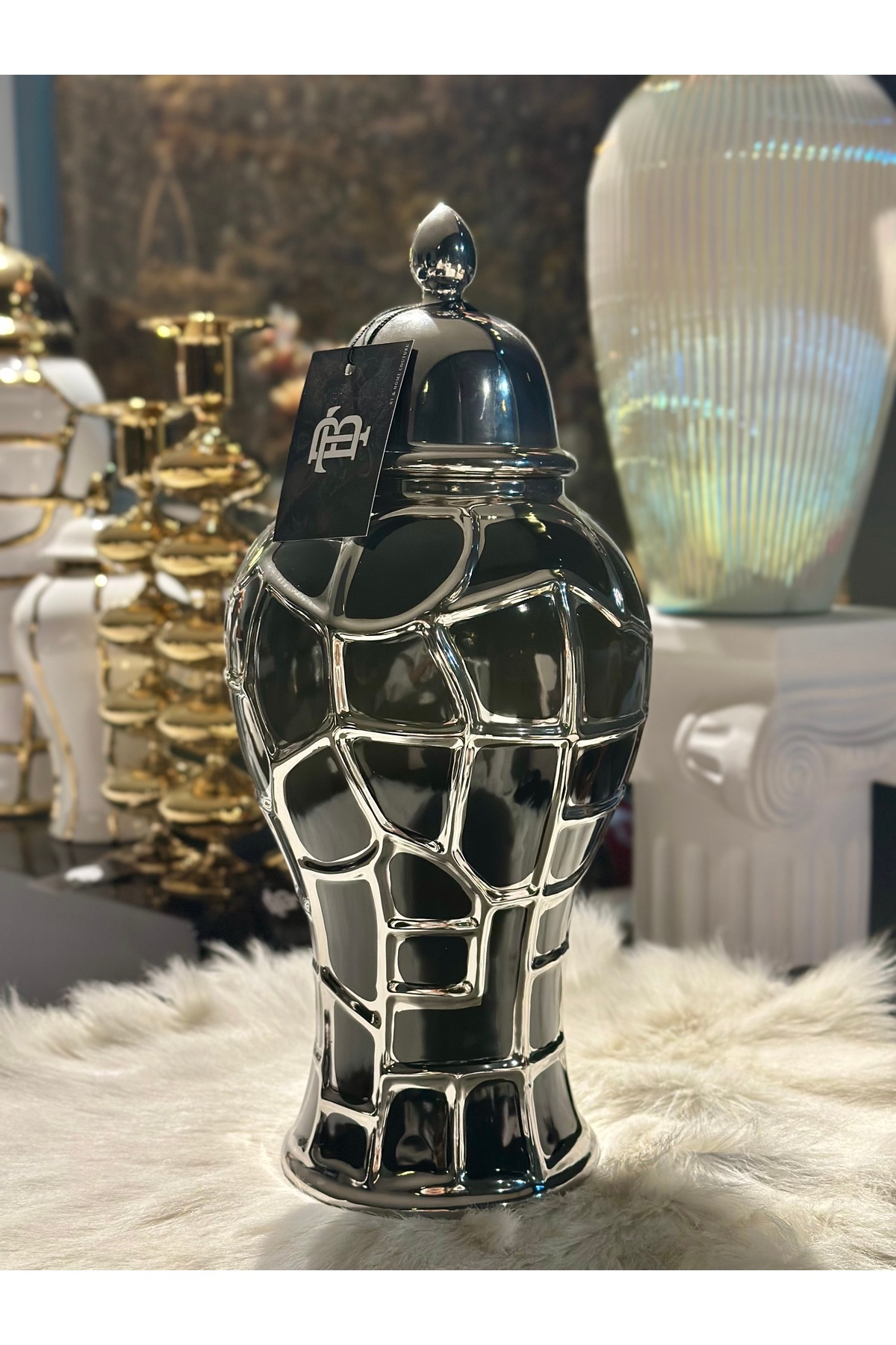Lüks Beyaz & Gümüş Dekoratif Kapaklı Seramik Küp Seti Lüks Beyaz & Gümüş Dekoratif Kapaklı Seramik Küp Seti BTHOME021 تک سایز