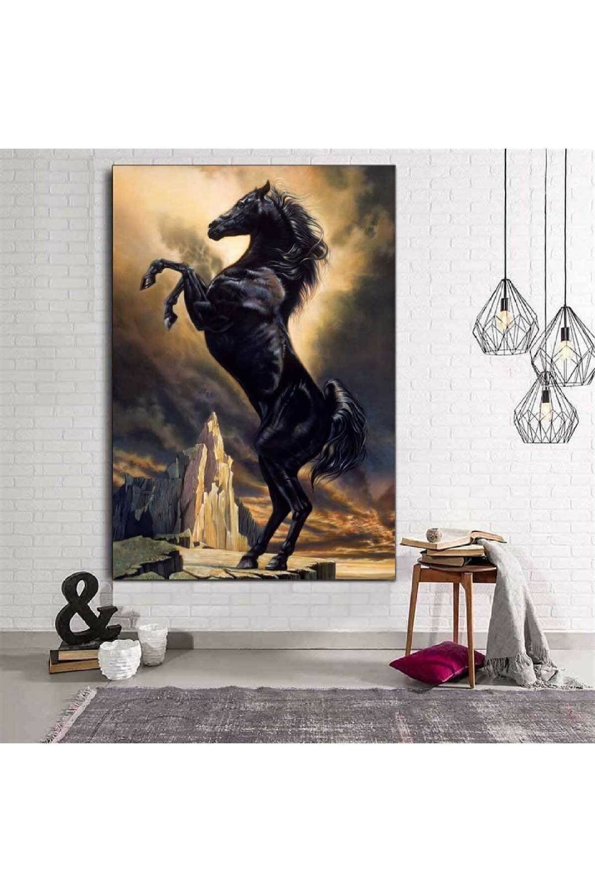 Koşan Kara At Dekoratif Kanvas - Mdf Ahşap Tablo Koşan Kara At Dekoratif Kanvas - Mdf Ahşap Tablo YTACNVS510023 100 x 140