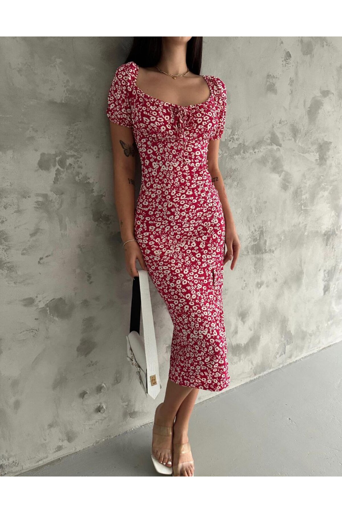 Kadın Bürümcük Kumaş Çiçek Desenli Yırtmaçlı Uzun Elbise Kadın Bürümcük Kumaş Çiçek Desenli Yırtmaçlı Uzun Elbise M230051 L
