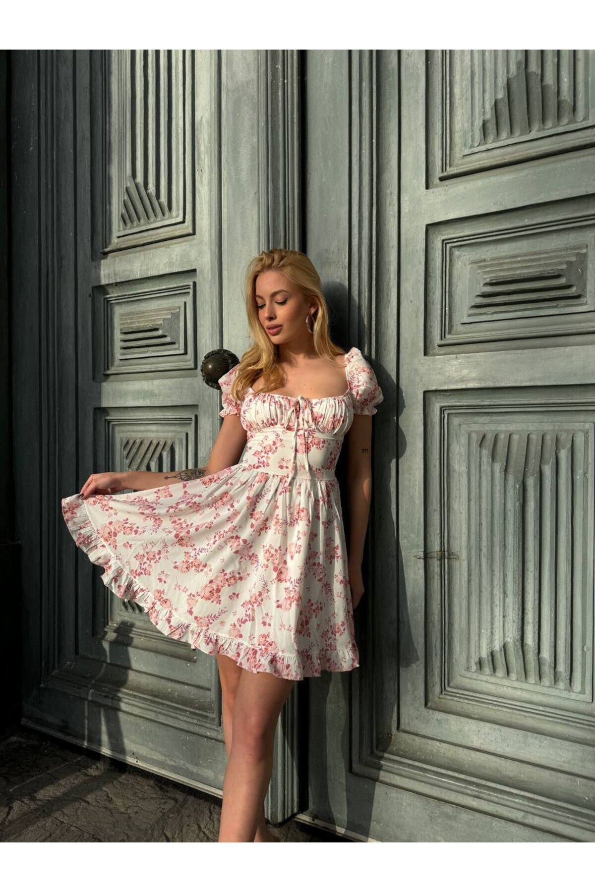 Kadın Yazlık Balon Kollu Çiçek Desenli Kısa Elbise Kadın Yazlık Balon Kollu Çiçek Desenli Kısa Elbise M230049 XL