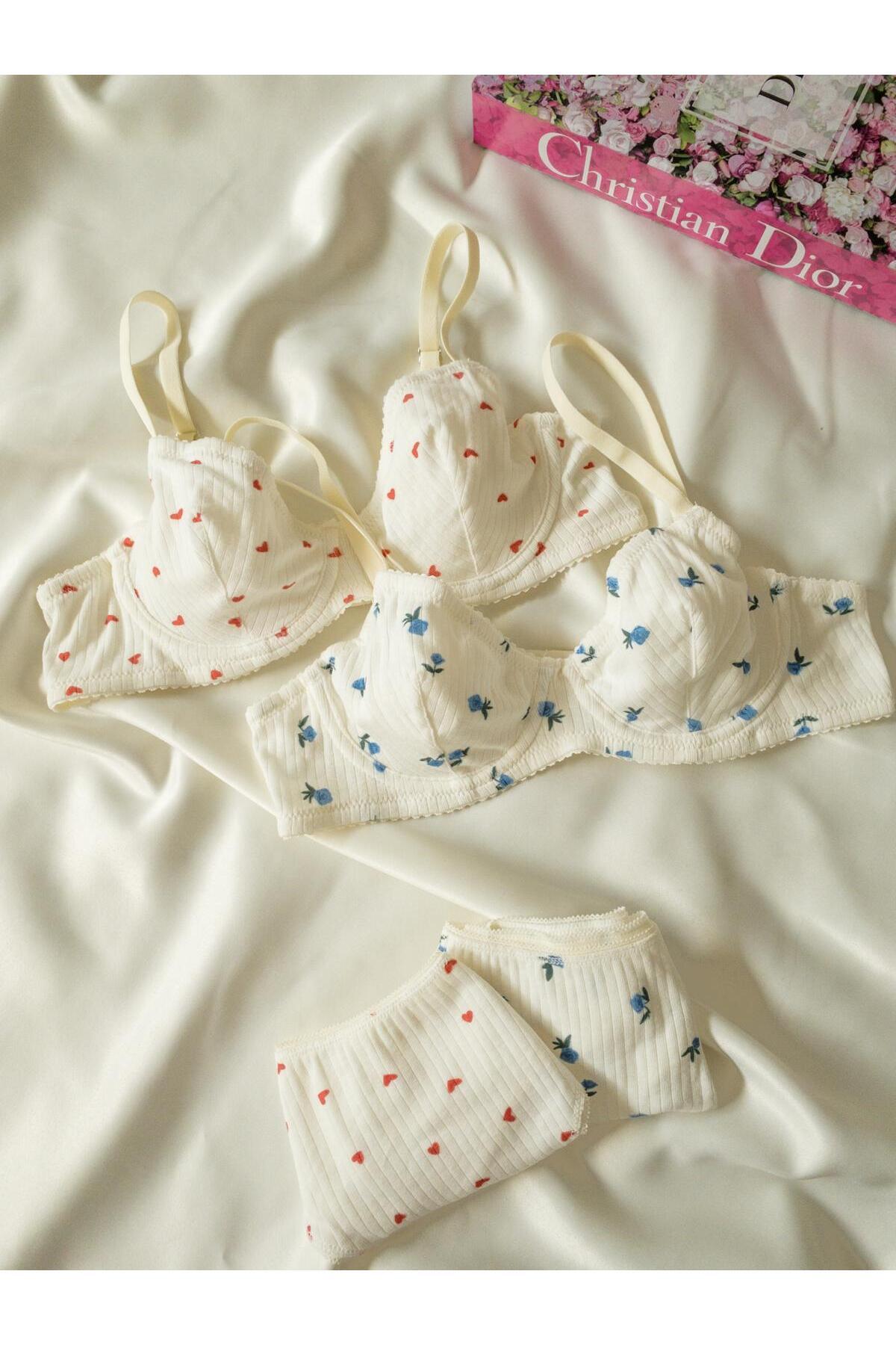 3'lü Renkli Balenli Desenli Pamuklu Sütyen Takım 3'lü Renkli Balenli Desenli Pamuklu Sütyen Takım İnko3lüsetyeni1 90B