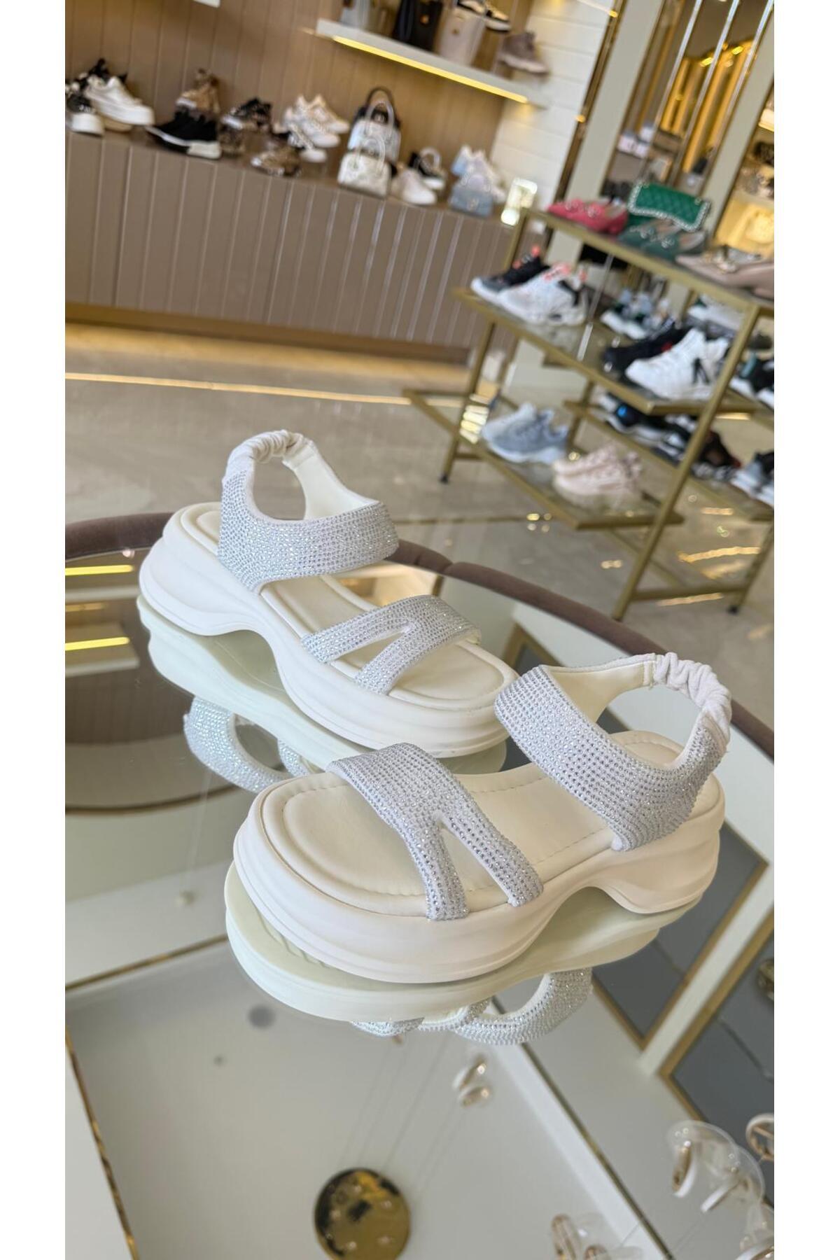 İthal Taşlı Pofuduk Model Arkası Lastikli Sandalet İthal Taşlı Pofuduk Model Arkası Lastikli Sandalet 1.TRL.SND.0013 40