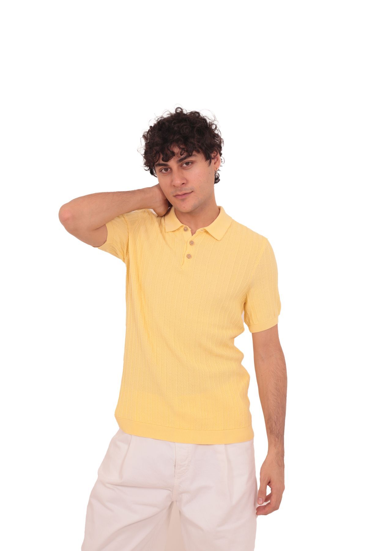 Erkek Polo Yaka Merserize T-shirt Sarı Erkek Polo Yaka Merserize T-shirt Sarı 25747 3XL