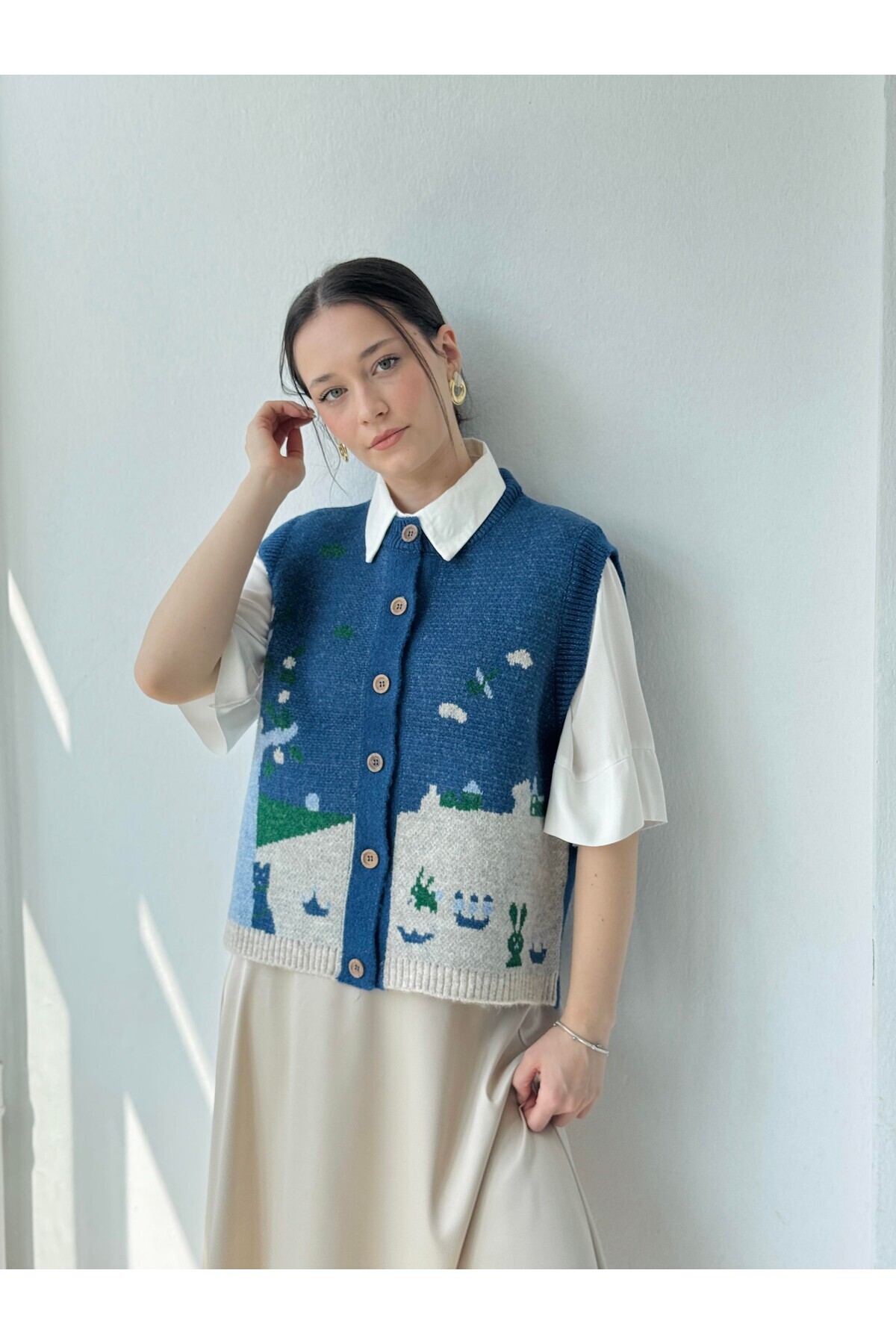 Tasarım Doğa Temalı Yelek Kadın İndigo Tasarım Doğa Temalı Yelek Kadın İndigo RBKYLK107 تک سایز
