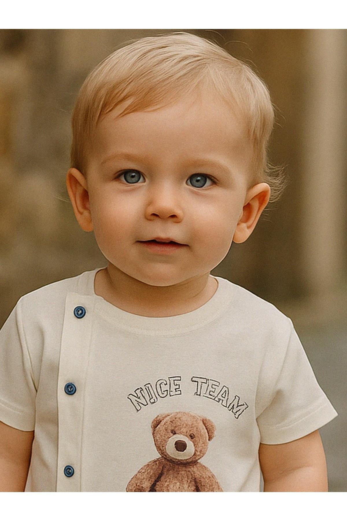 Erkek Bebek Çizgili Teddy Yazlık Müslin Takım Erkek Bebek Çizgili Teddy Yazlık Müslin Takım Y1052 12-18 AY