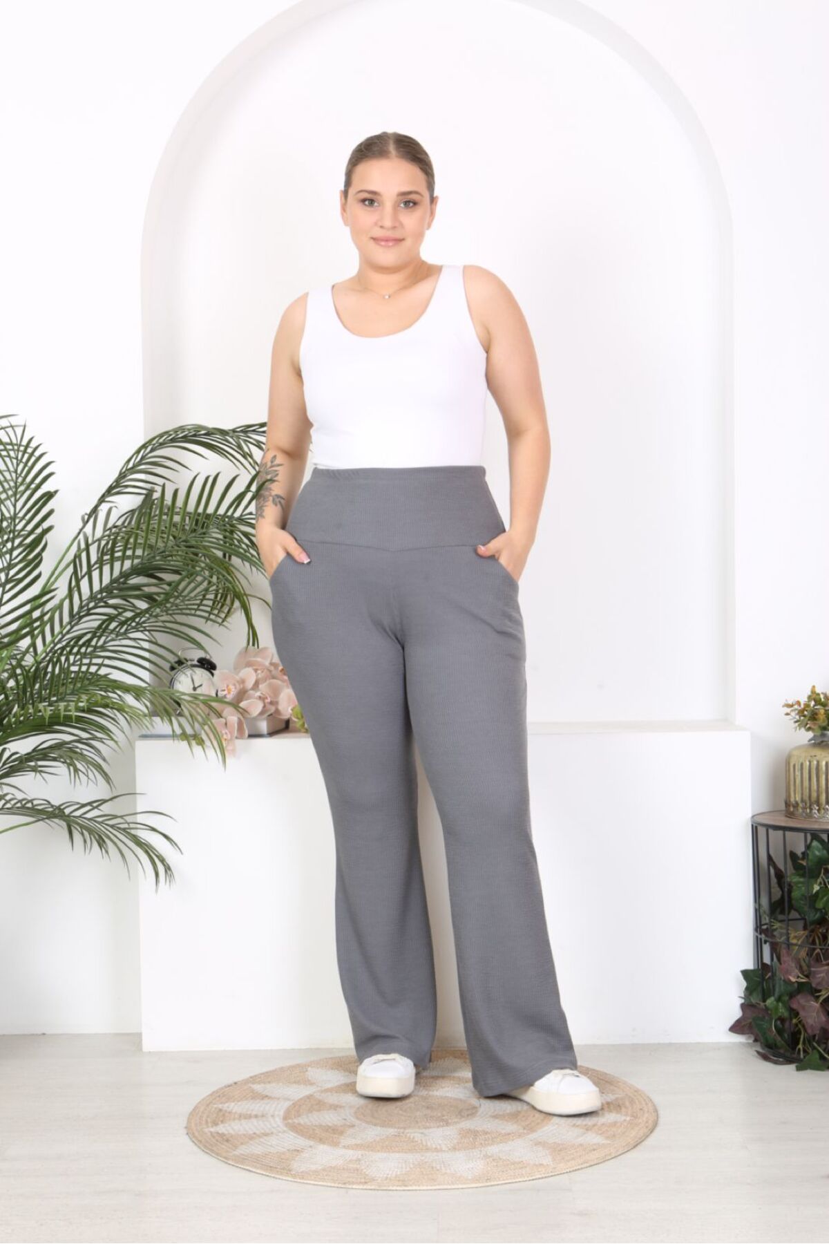 Krep kumaş dikiş detaylı krem renk salaş pantolon Krep kumaş dikiş detaylı krem renk salaş pantolon 100572 62