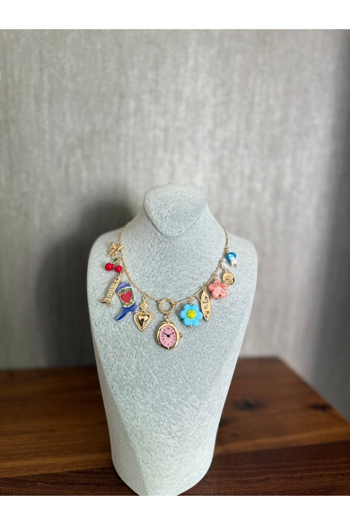 Kalp ve Çoklu Charm Detaylı Gold Kolye Kalp ve Çoklu Charm Detaylı Gold Kolye K230 45 cm