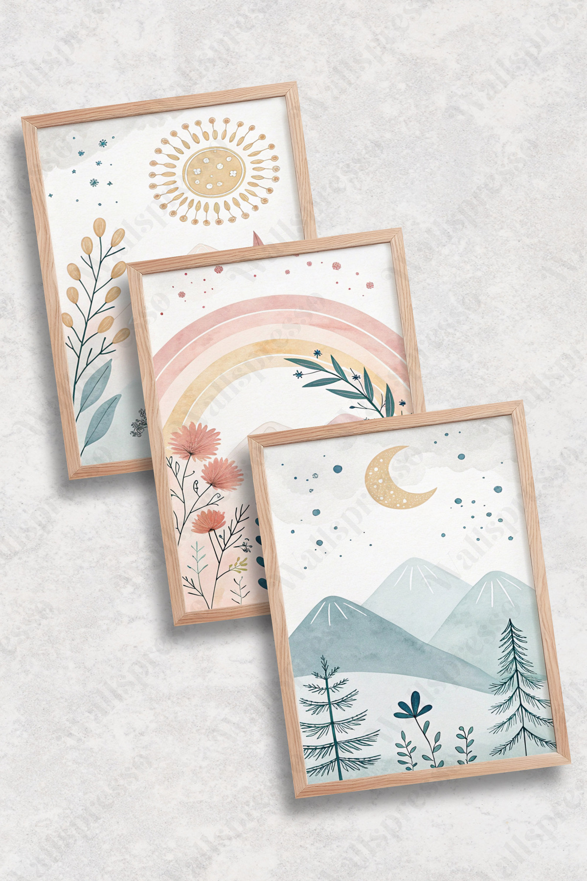 Çocuk Odası Ahşap Çerçeveli Tablo - 3'lü Tablo Seti - Bebek Odası Tablo - Üçlü Tablo - Bohem Tablo Çocuk Odası Ahşap Çerçeveli Tablo - 3'lü Tablo Seti - Bebek Odası Tablo - Üçlü Tablo - Bohem Tablo 3CCT033 50 x 70