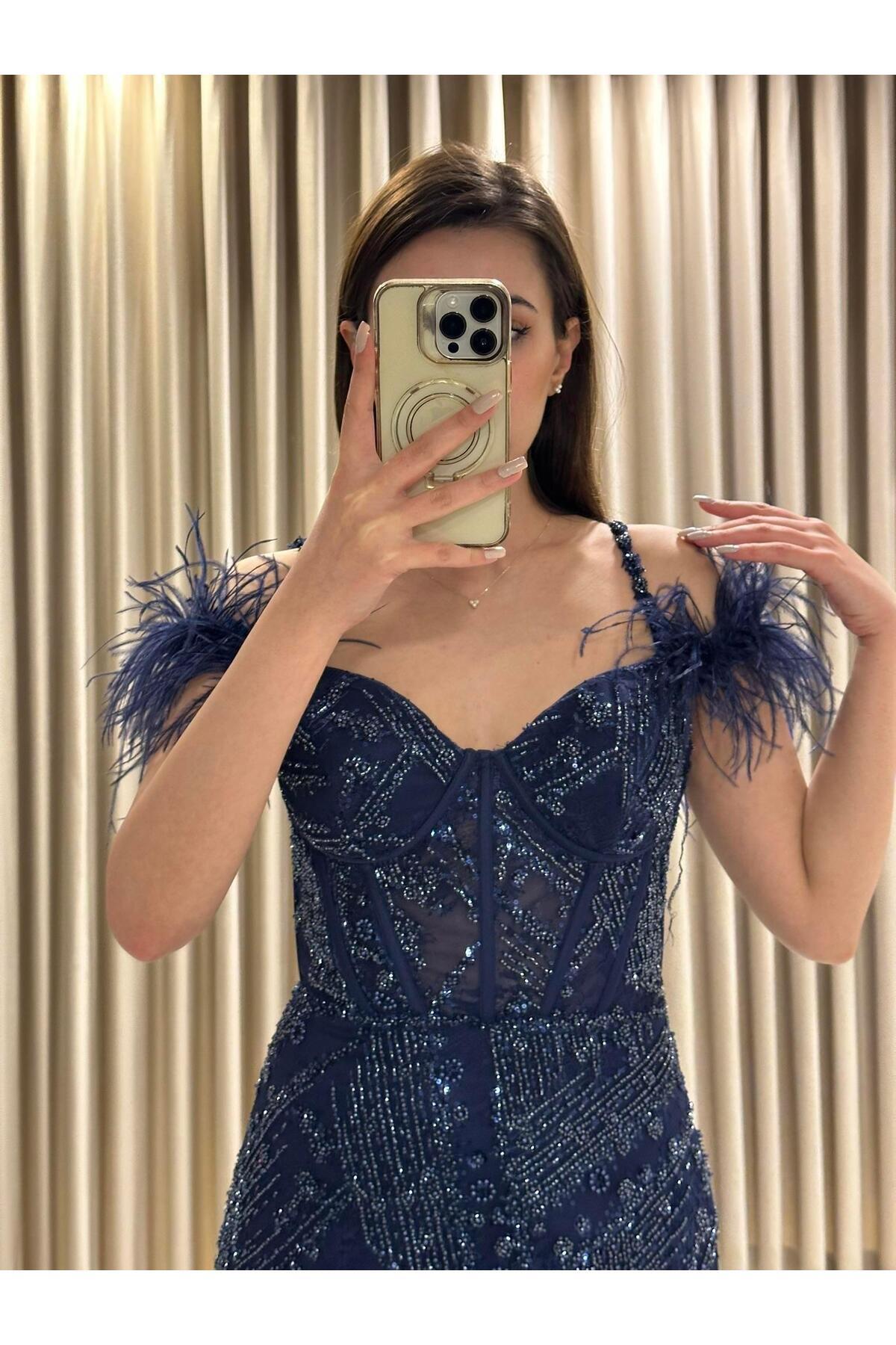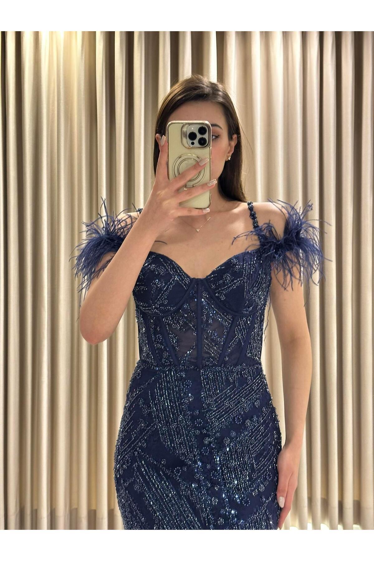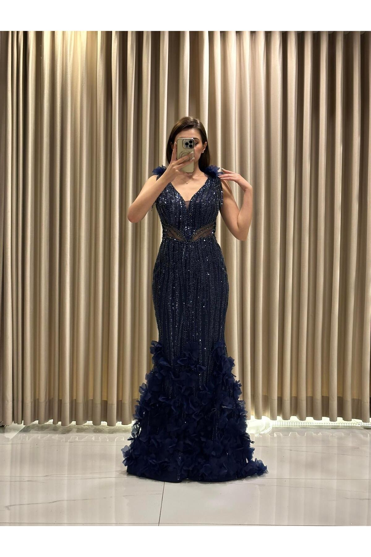 Lacivert Otriş Detay Balık Abiye Elbise 974 Lacivert Otriş Detay Balık Abiye Elbise 974 SE974 44