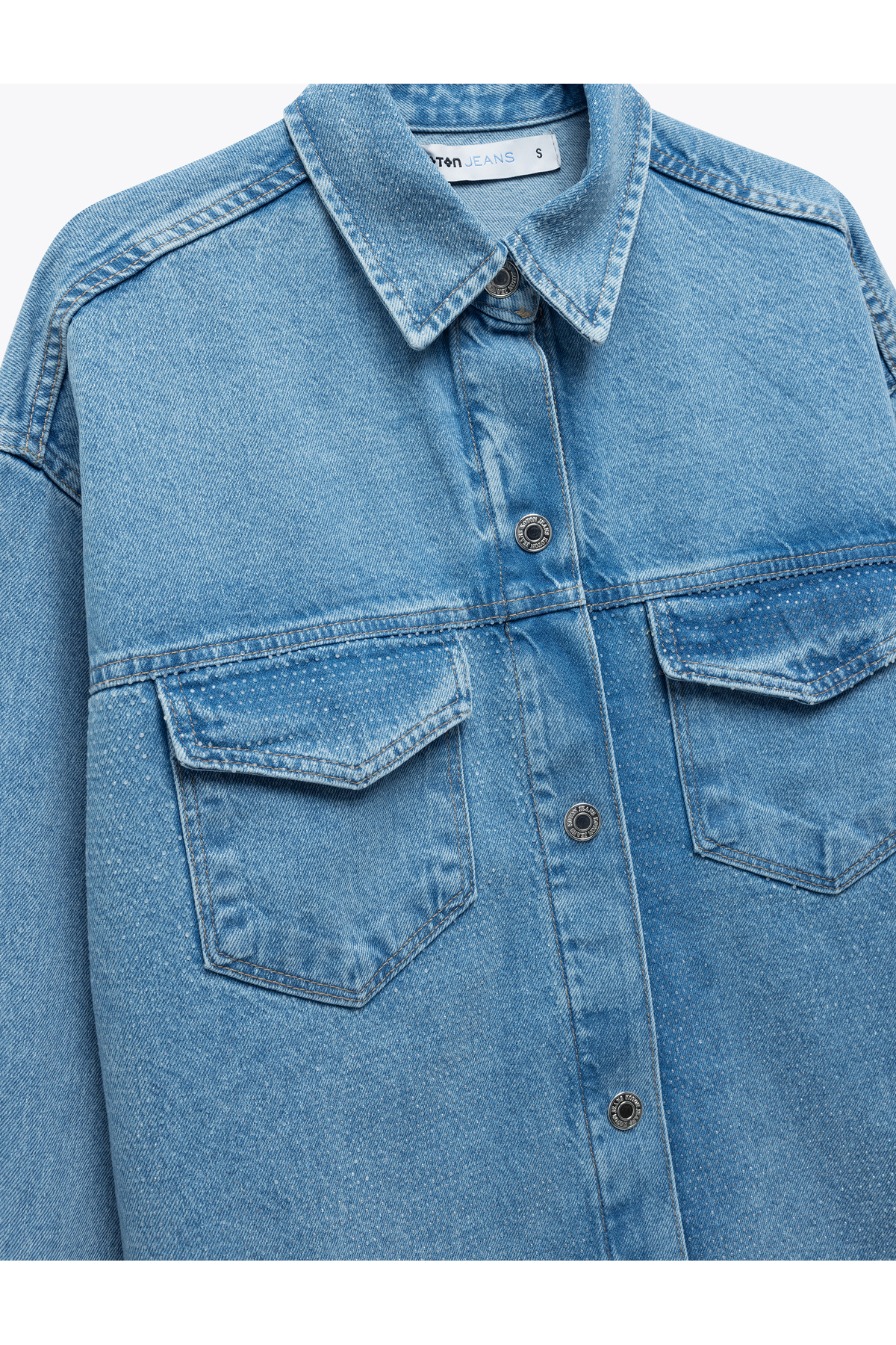 Taş Detaylı Uzun Kollu Relax Fit Pamuklu Denim Ceket Taş Detaylı Uzun Kollu Relax Fit Pamuklu Denim Ceket TYC0903016875M5SAL5000006 L
