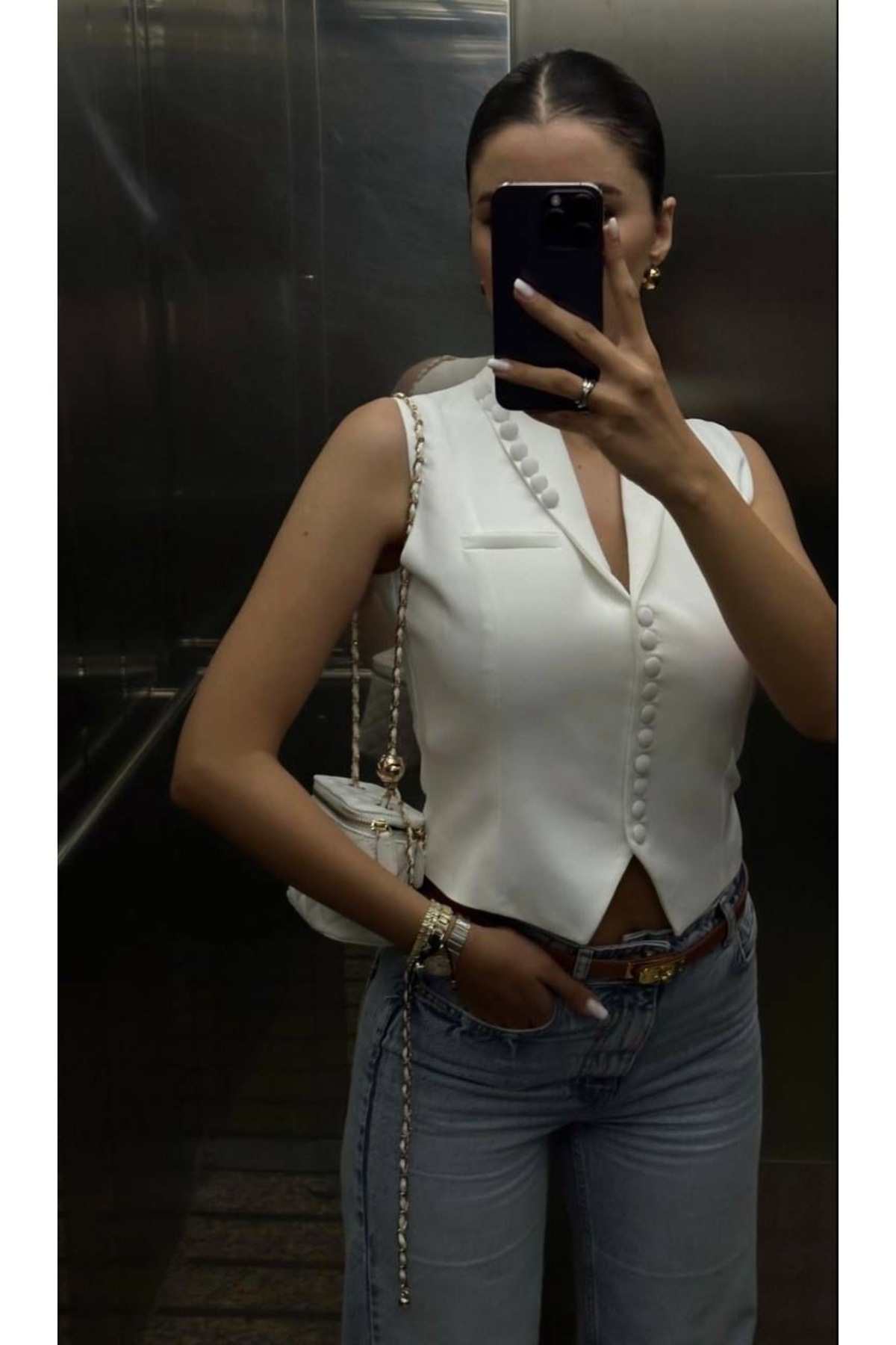 YAKA VE ÖNÜ DÜĞME DETAYLI KADIN YELEK YAKA VE ÖNÜ DÜĞME DETAYLI KADIN YELEK 5Y025 L