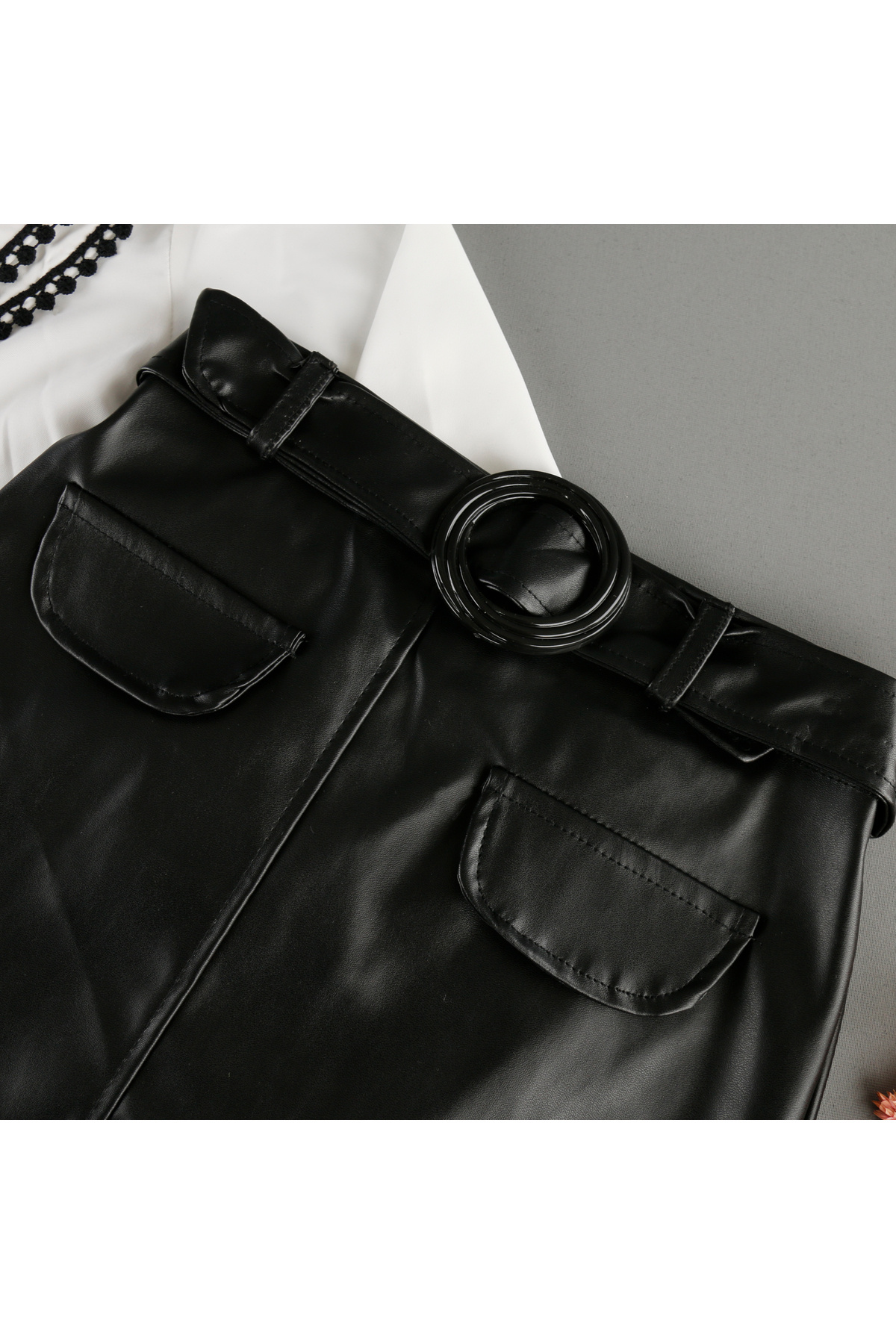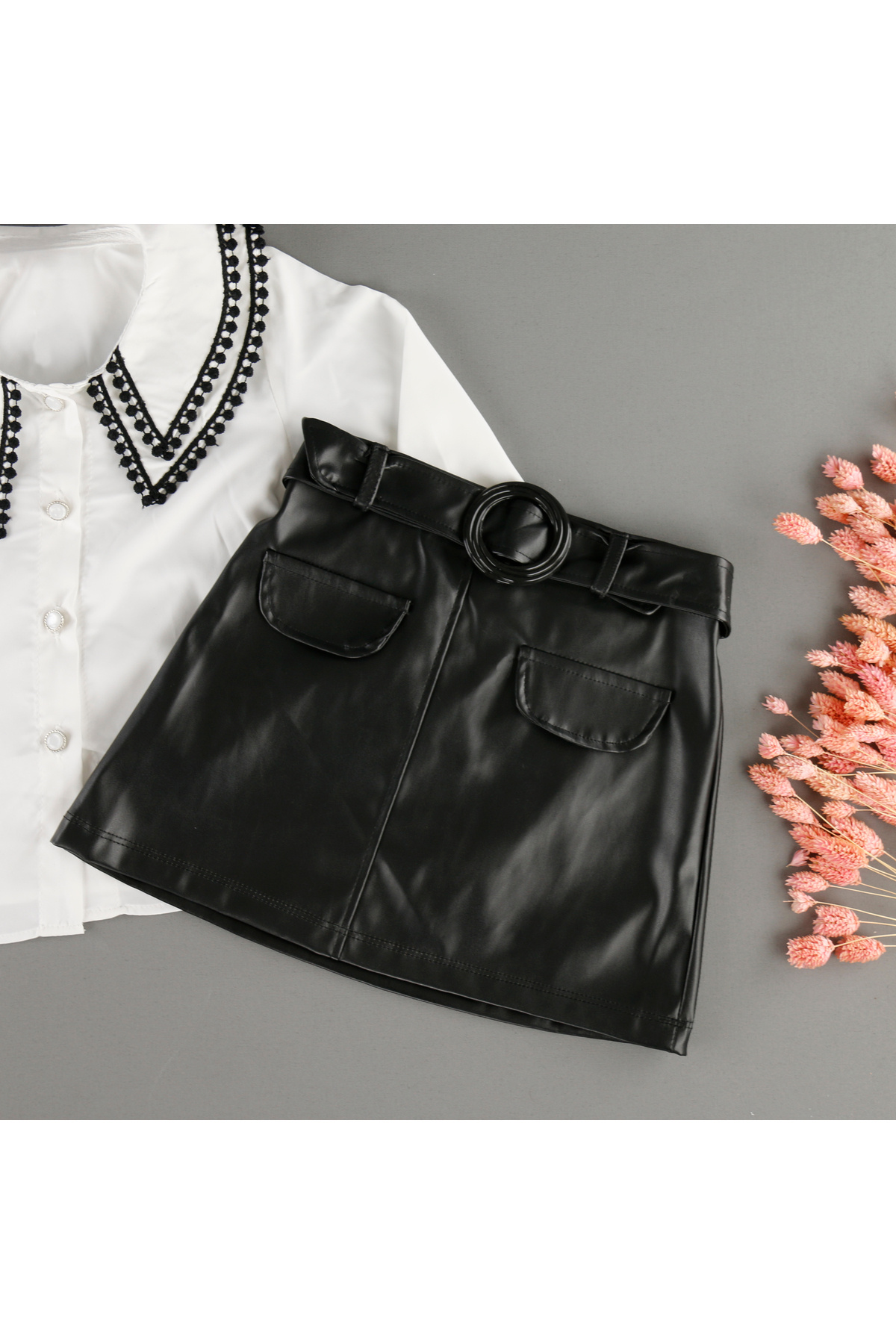 Deri Görünümlü Fisto Yakalı Gömlekli Etekli 2'Li Kız Takm Deri Görünümlü Fisto Yakalı Gömlekli Etekli 2'Li Kız Takm BLZ7154 5 Yaş