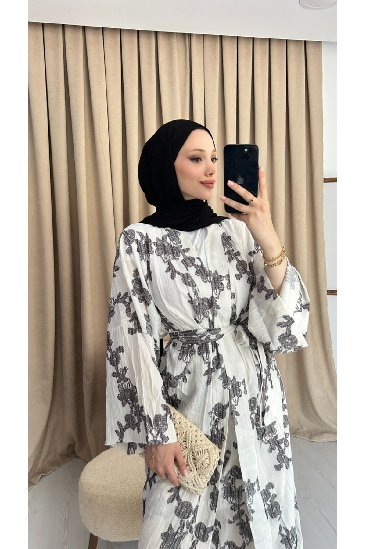 Kahverengi Beyaz Desenli Kimono Pantolon Kadın Alt Üst Takım Kahverengi Beyaz Desenli Kimono Pantolon Kadın Alt Üst Takım UKPT300425 42