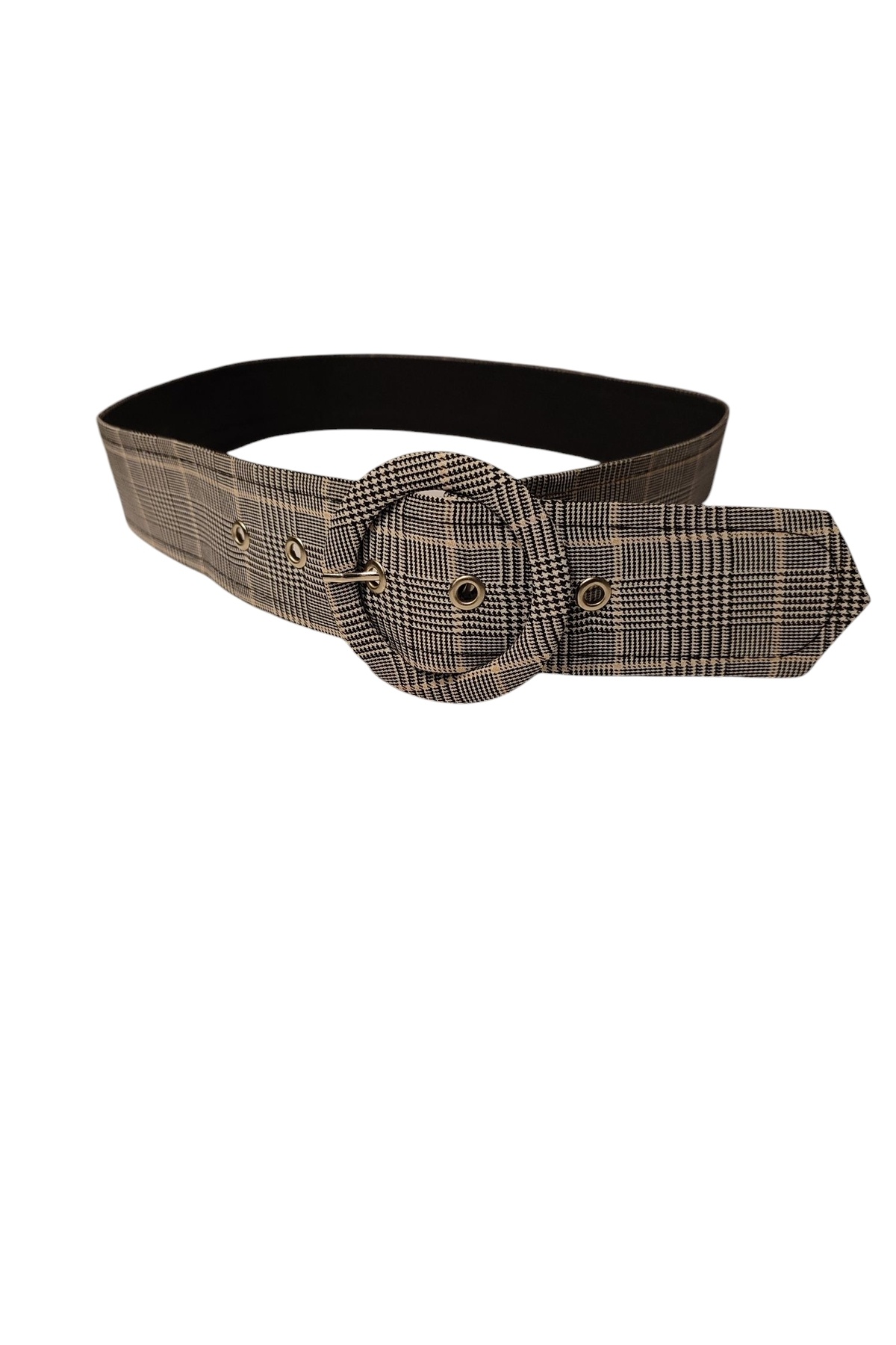 Gri bej çizgili kumaş kaplama kuş gözü delikli şık kemer Gri bej çizgili kumaş kaplama kuş gözü delikli şık kemer ergn001 36/38