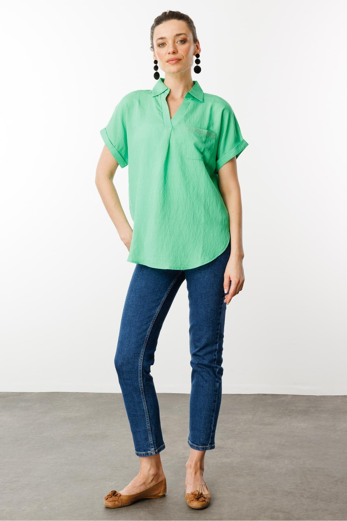 Kadın Polo Yaka Düşük Kol Gömlek Yeşil Kadın Polo Yaka Düşük Kol Gömlek Yeşil 25843 XL